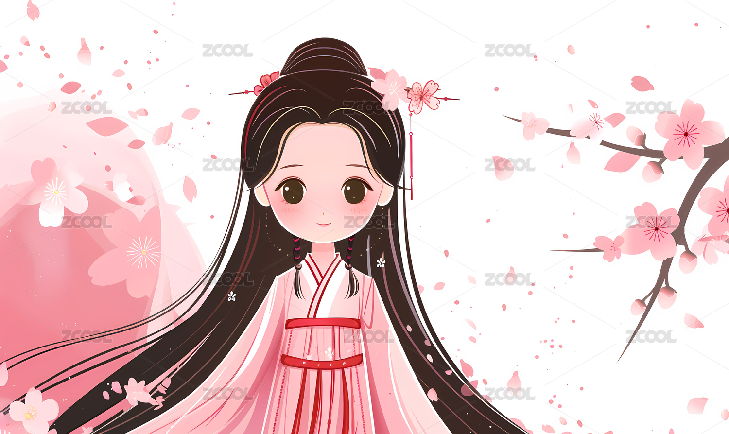 粉色,古典,女生,插画,美女,女人,汉服,中国文化,美,人