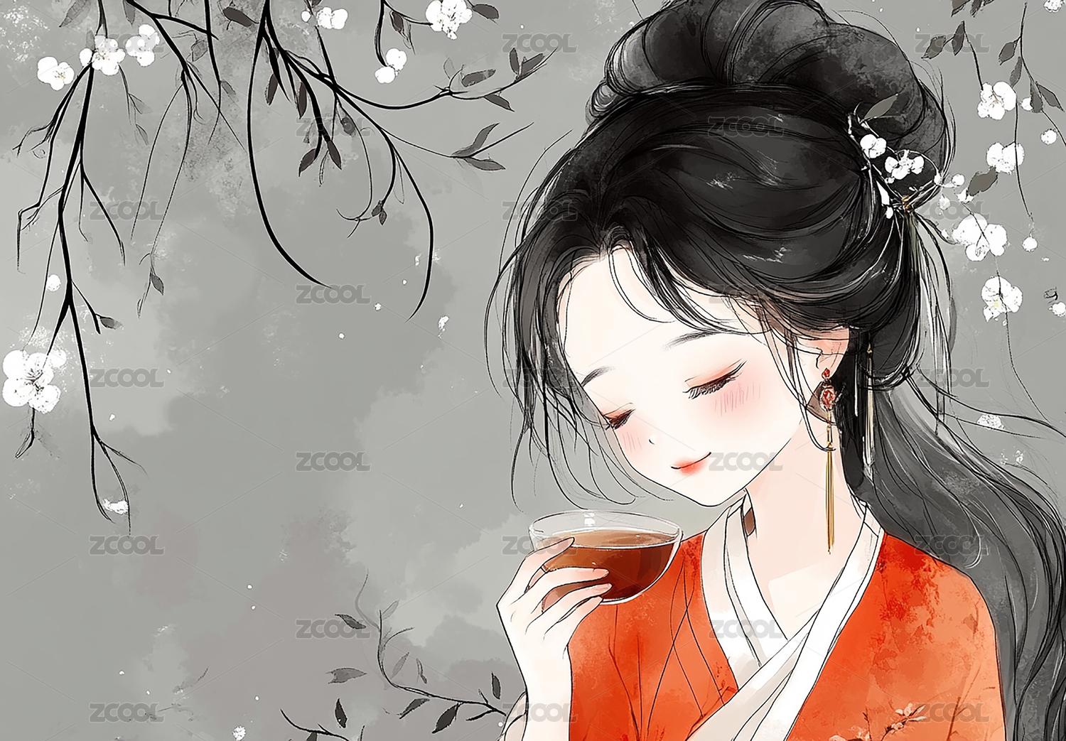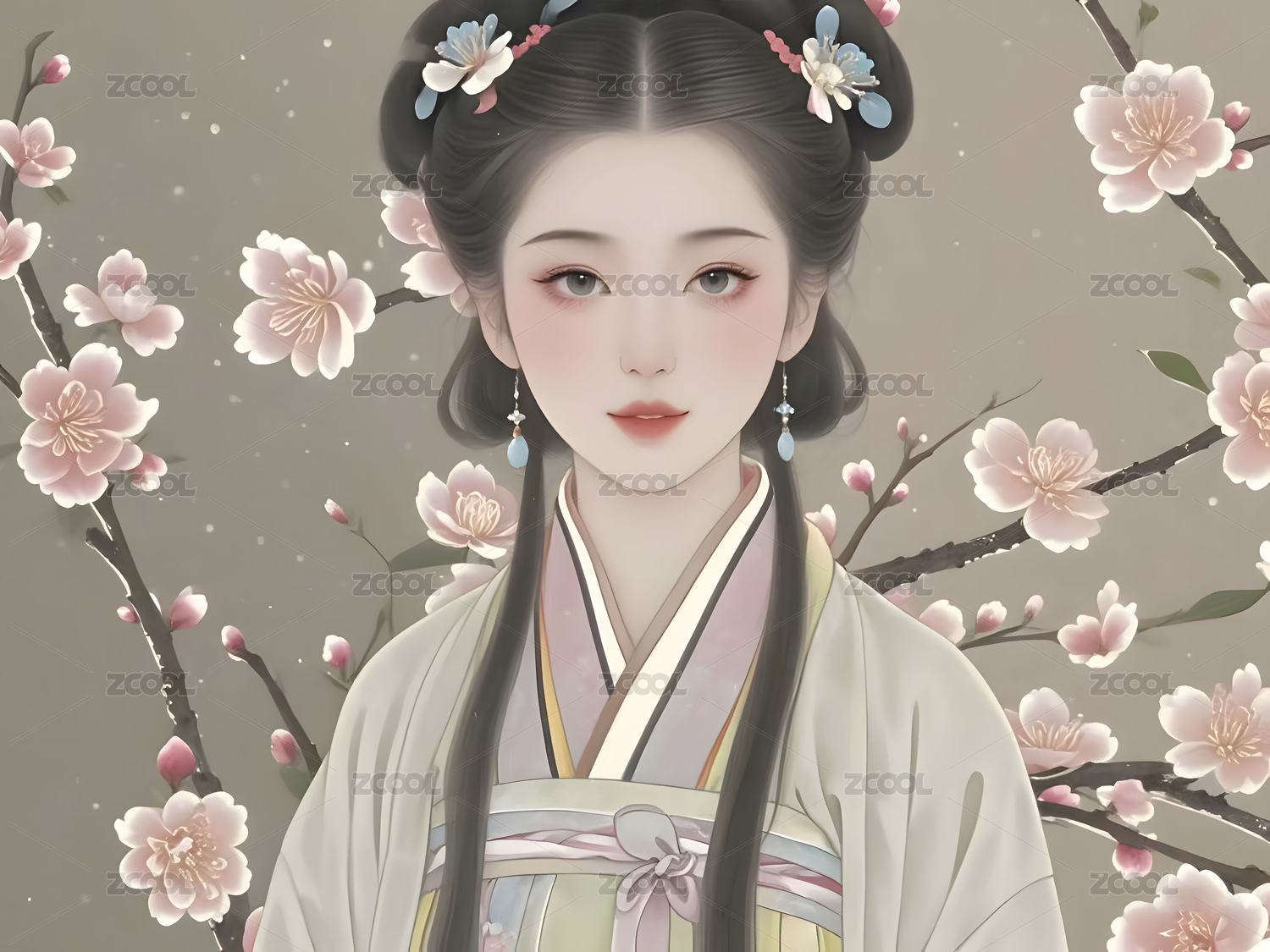 美丽的古装汉服女孩插画