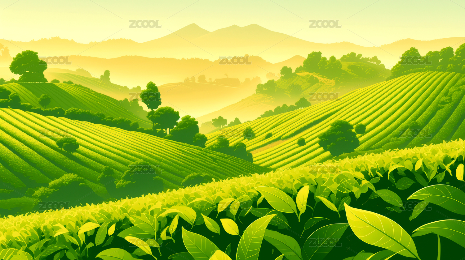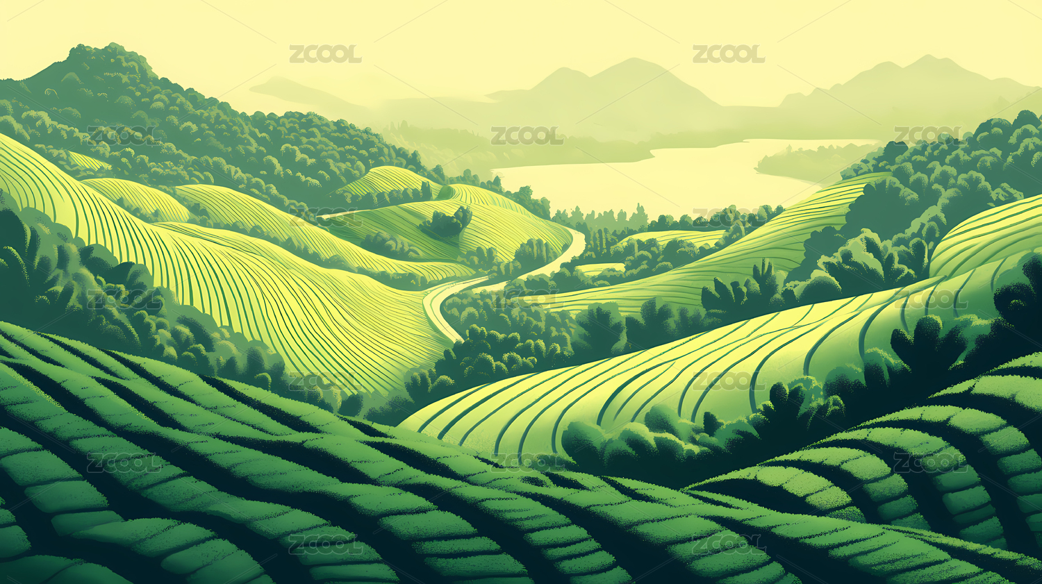 绿色,风景,户外,插画,自然,旅行,农业,梯田,田地,田园风光