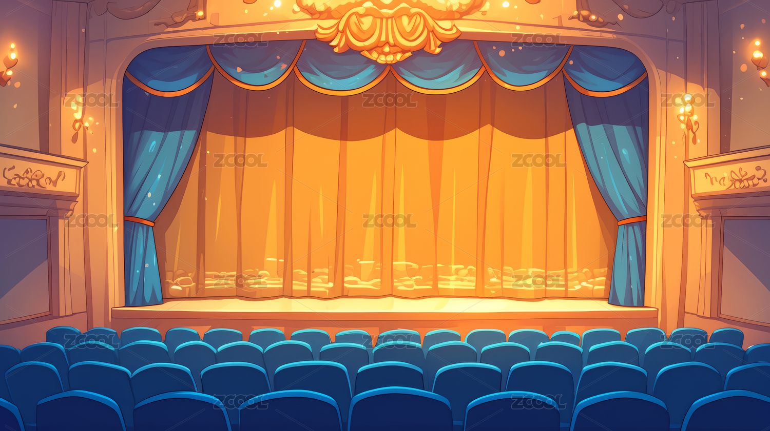 剧场,剧院,幕布,气球,鲜花,少儿,儿童,儿插,背景,灯光