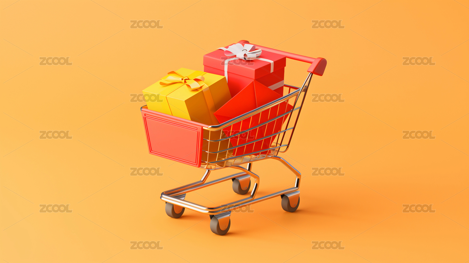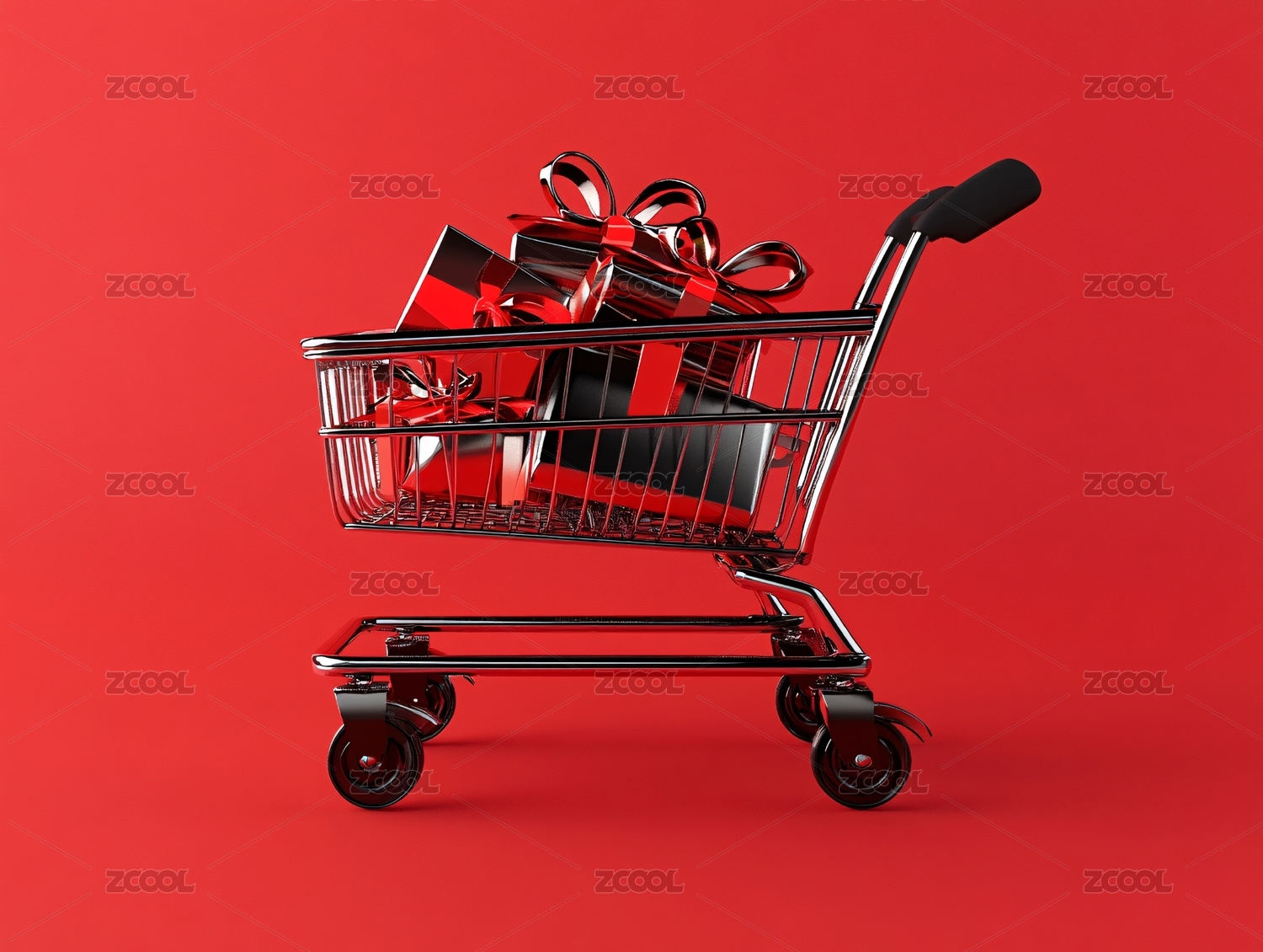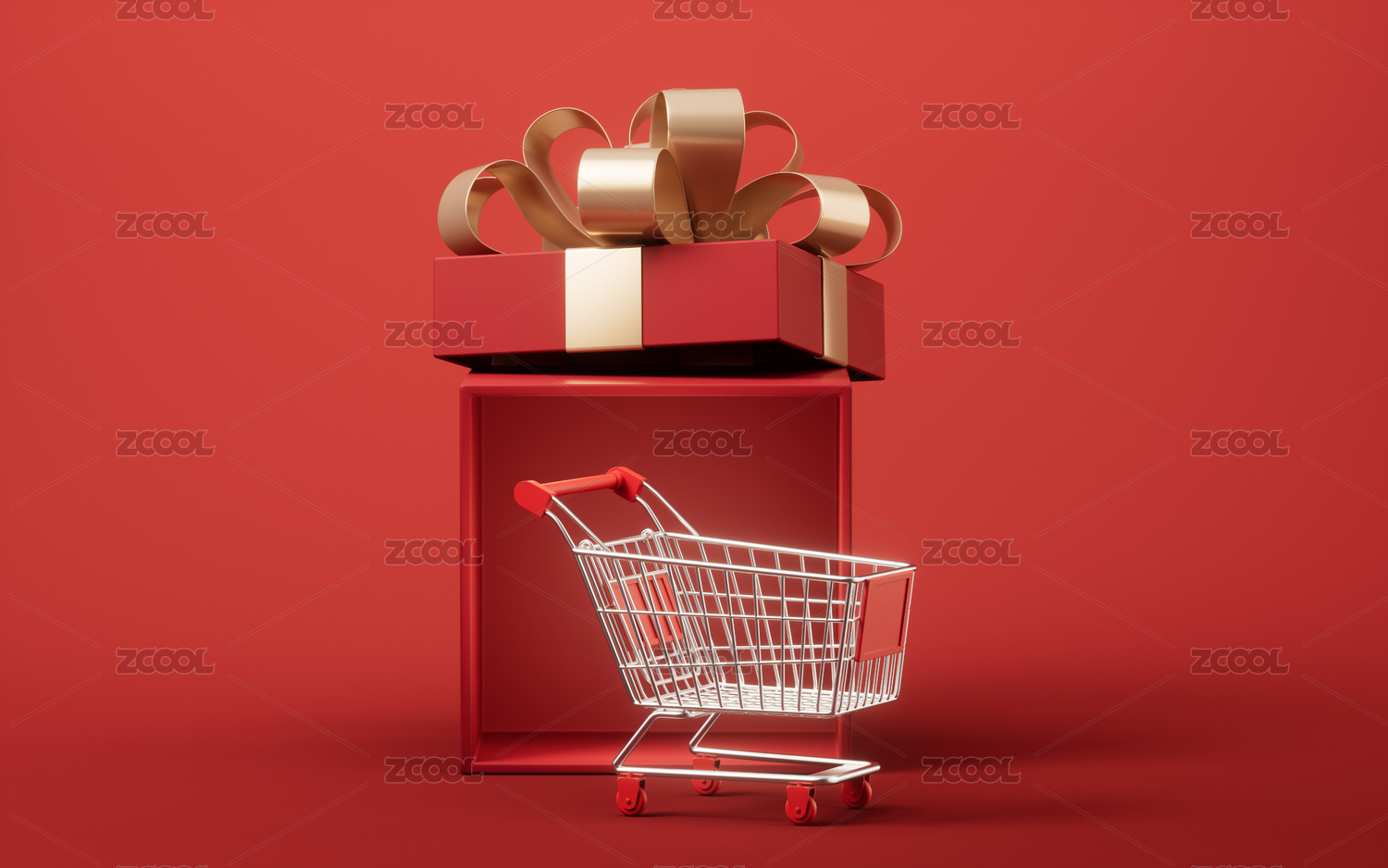 插画,3D,数字,卡通,商业,消费,购买,购物,红色,商场
