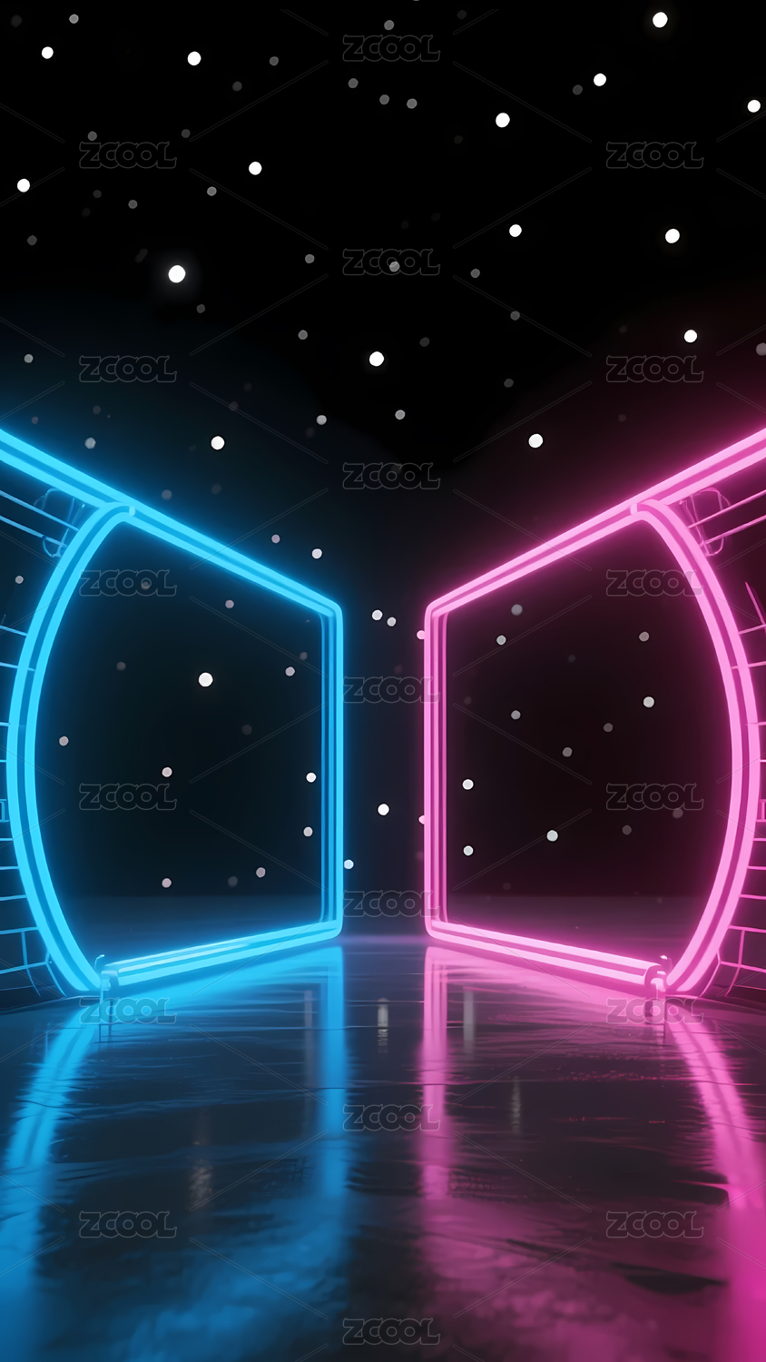 数码科技赛博朋克发光几何抽象海报背景