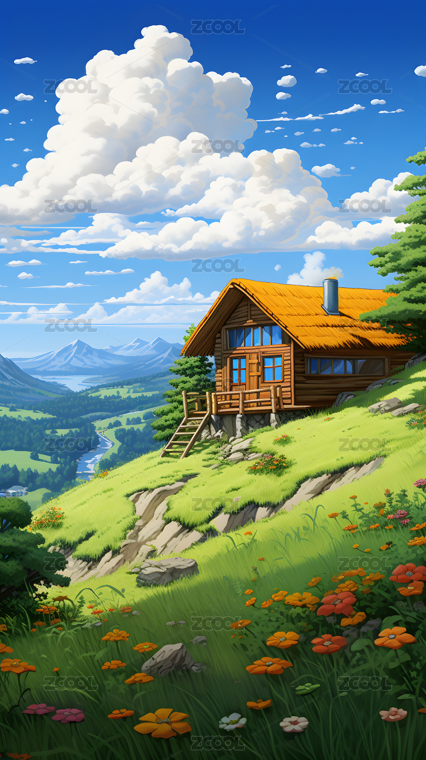 木屋卡通插画