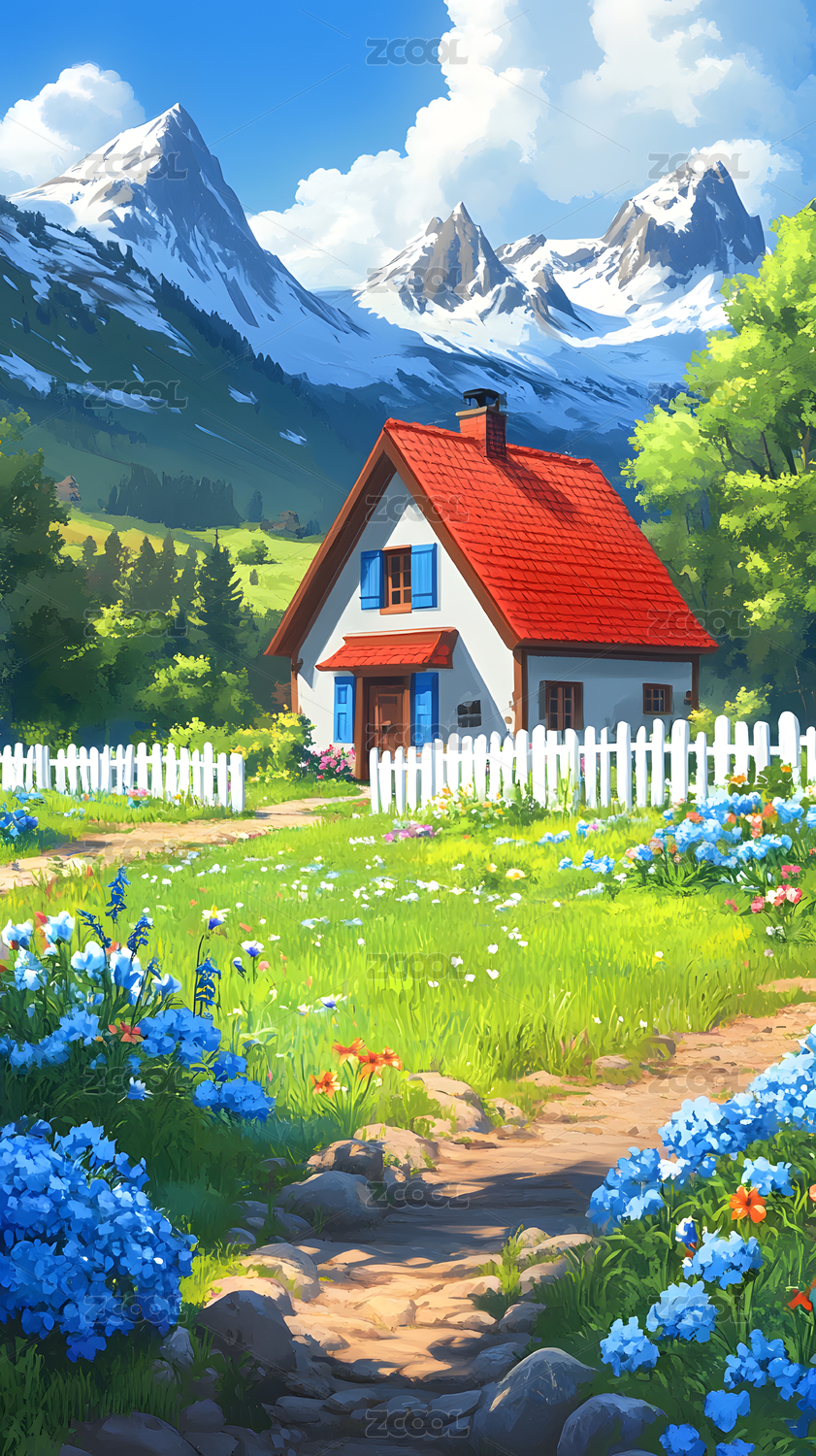 田园小屋风景插画