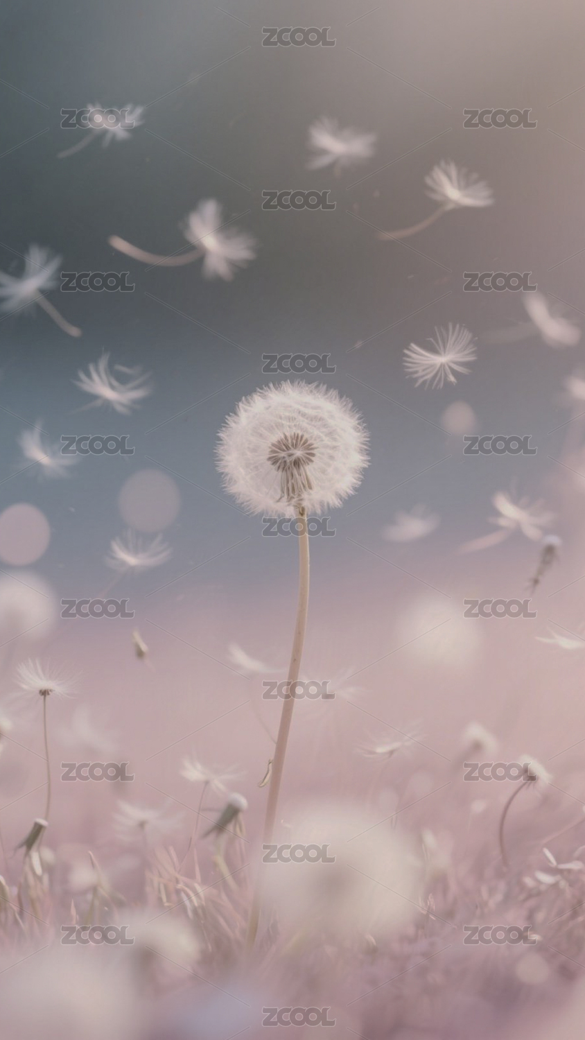 梦幻背景下的蒲公英与飞絮