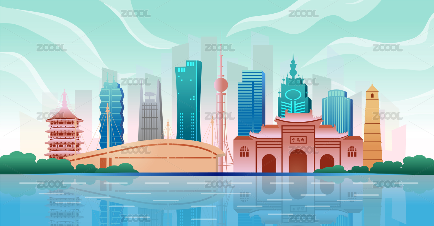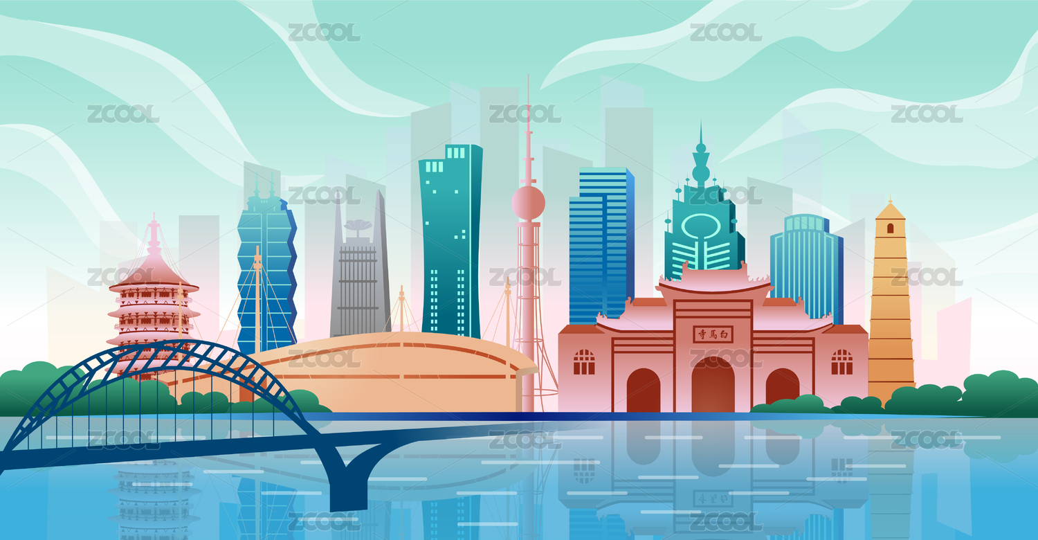 中国河南省洛阳市商务科技城市彩色矢量插画