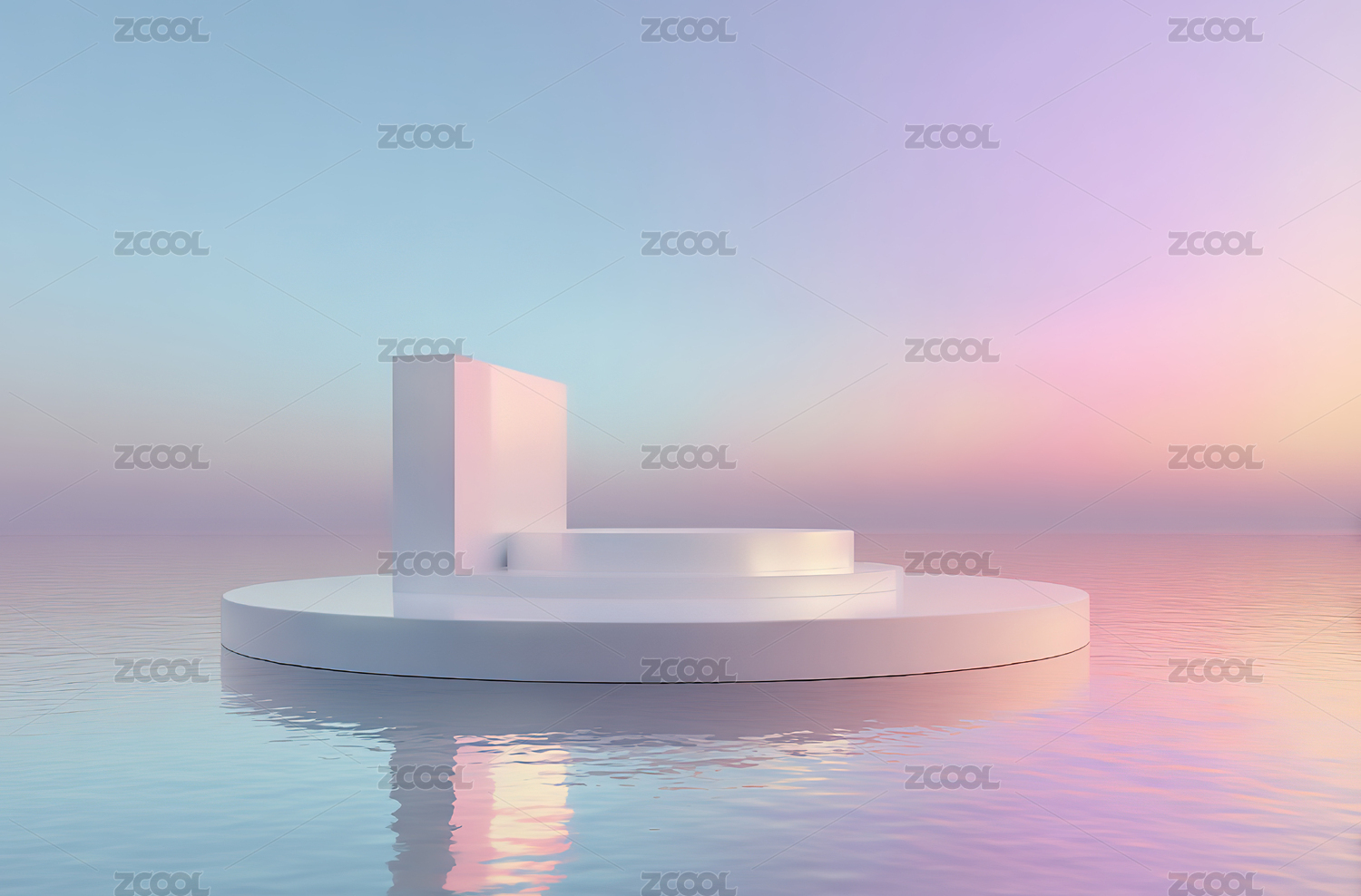 水面倒影中的立方体与粉红云霞