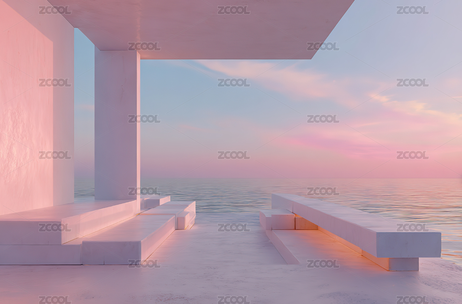 简约,华丽,干净,海边,极简,三维渲染,3D,建筑,抽象,寂静