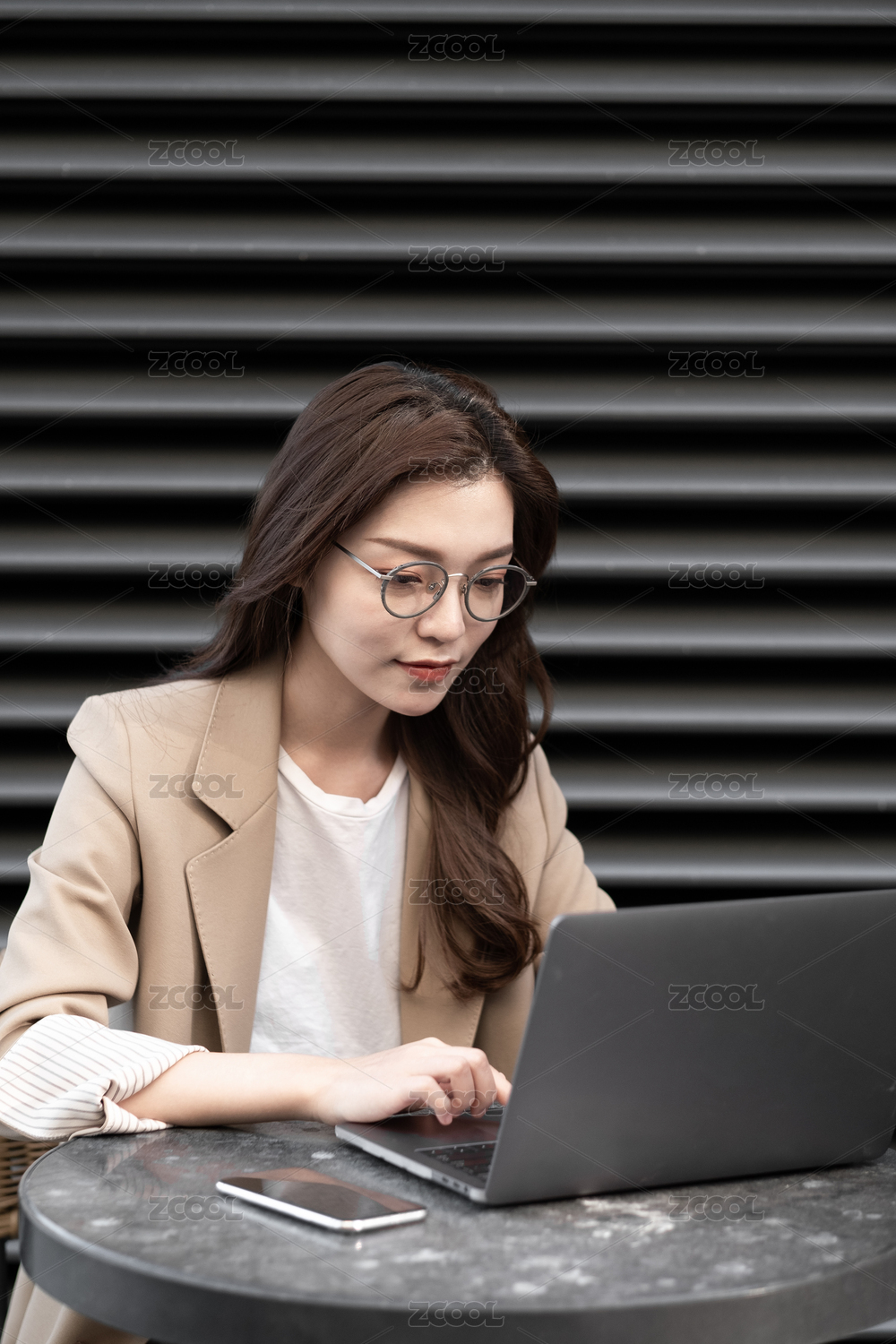 年轻商务女士在户外办公