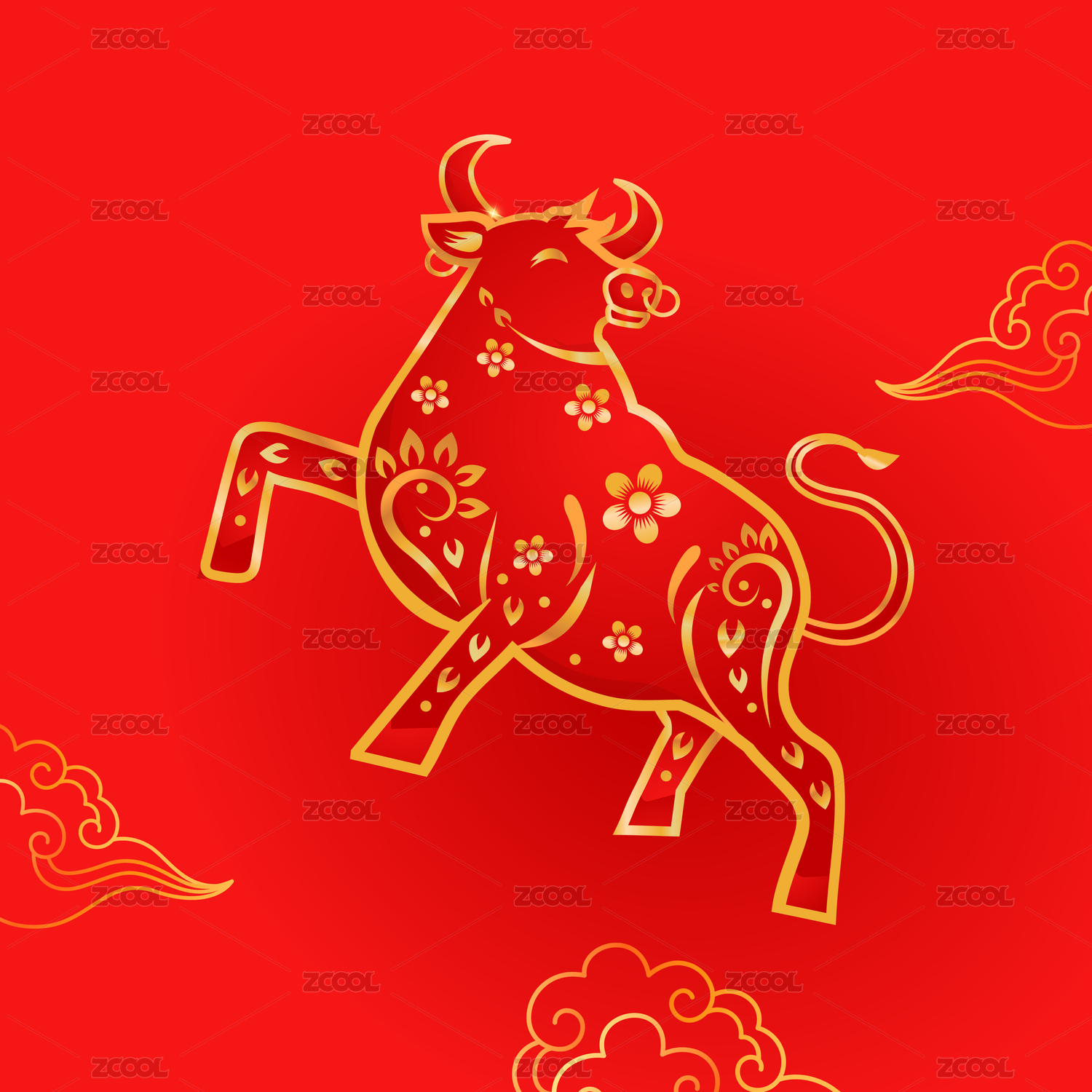 HEZODIAC2021,牛年,生肖,新年,中国风,剪纸,传统,2021,春节,印章