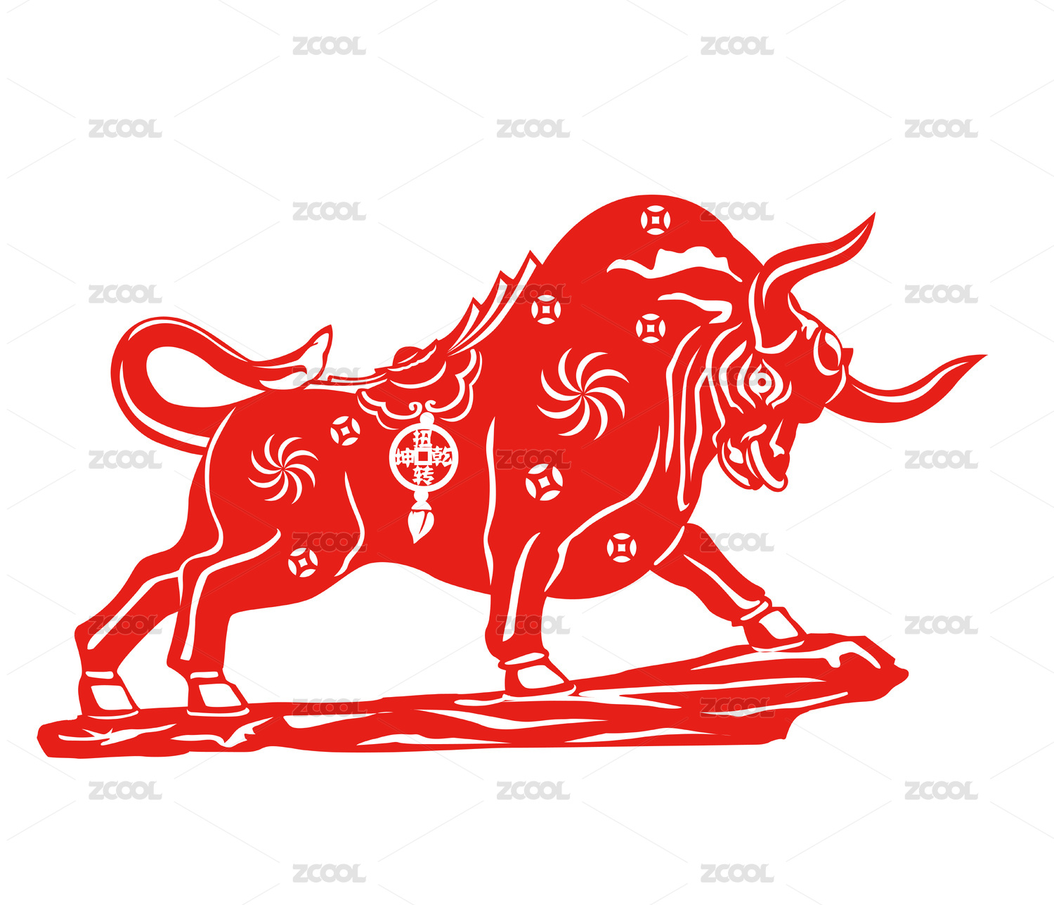 牛年剪纸中国传统剪纸牛红色窗花门贴
