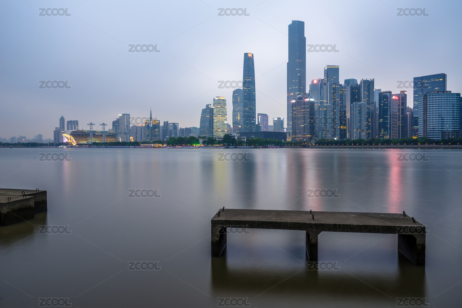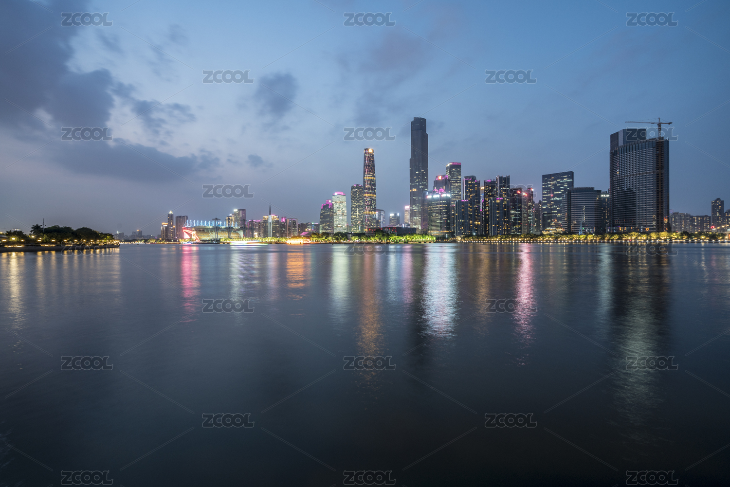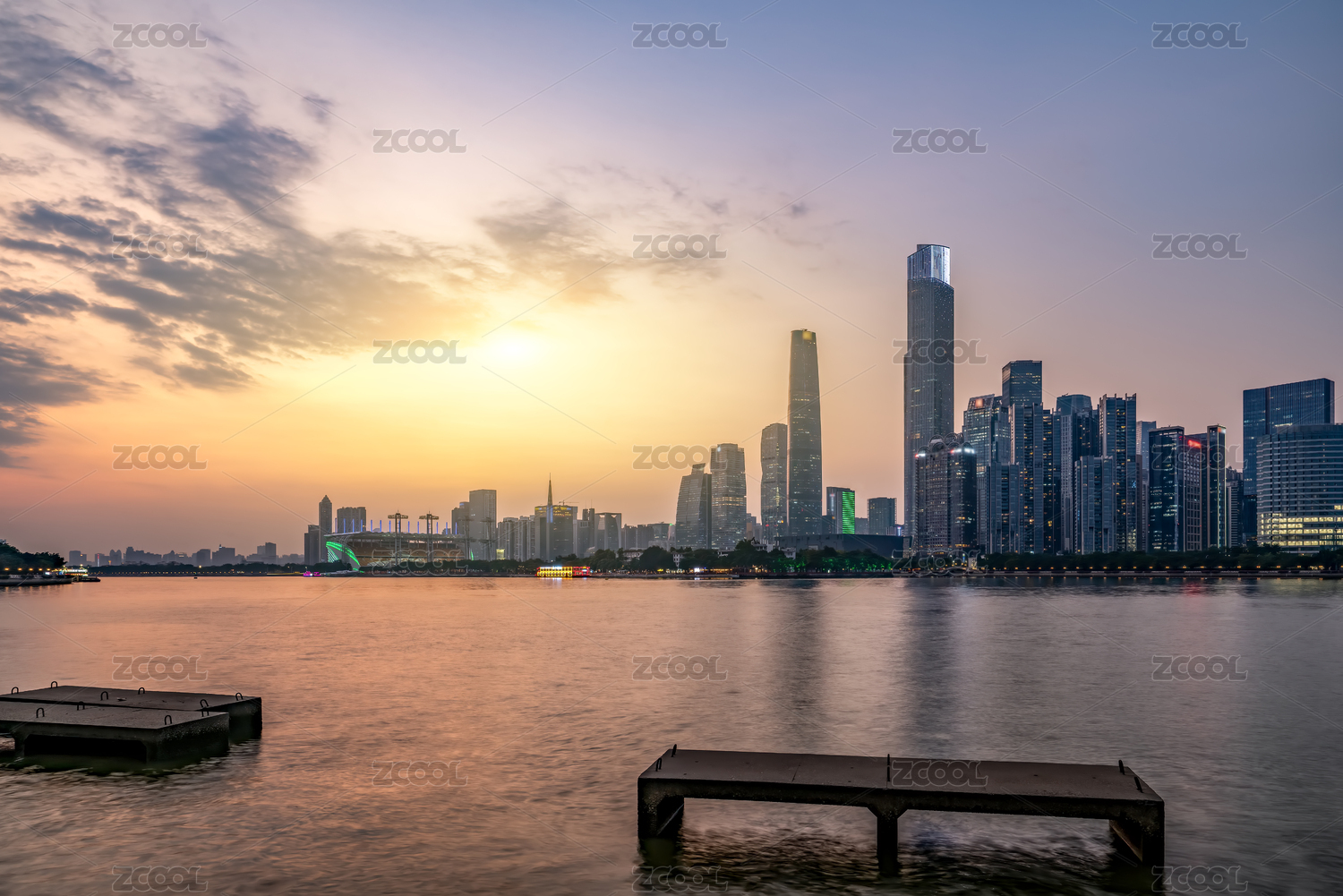广州珠江两岸广州塔东塔西塔建筑群天际线