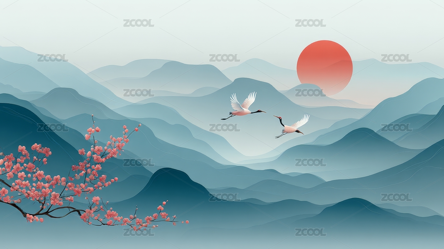 山水,中国,中国风,国风,矢量,喜鹊,梅花,云纹,插画,海水纹