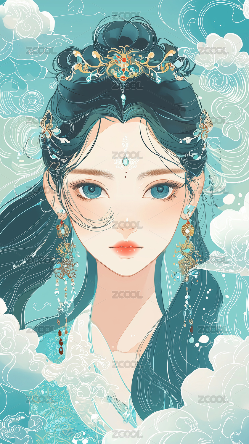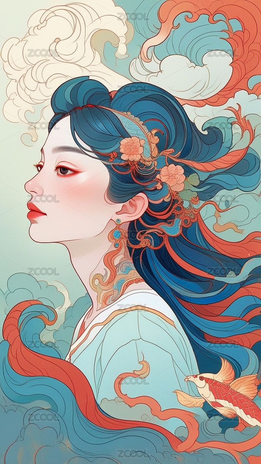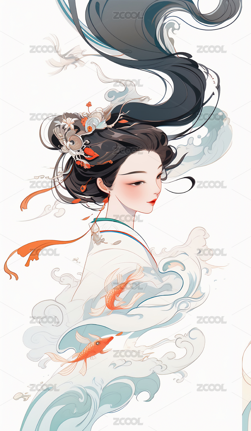 古风,唯美,绘画,设计,中国风,女子,插画,发饰,壁纸,头像