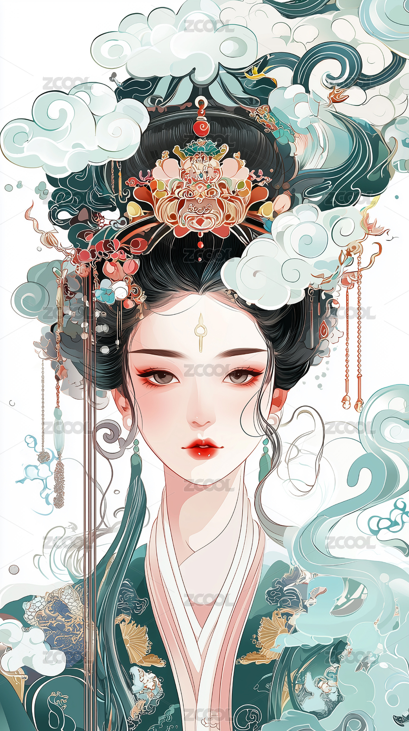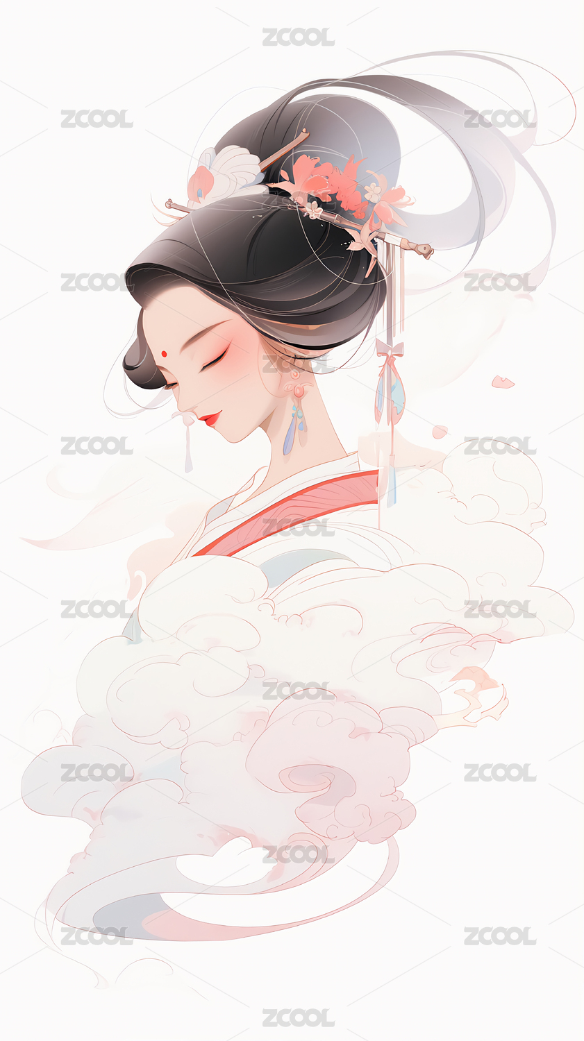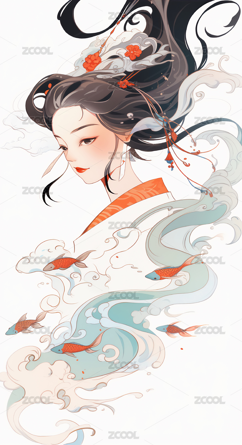 古风,唯美,绘画,设计,中国风,女子,插画,发饰,壁纸,头像