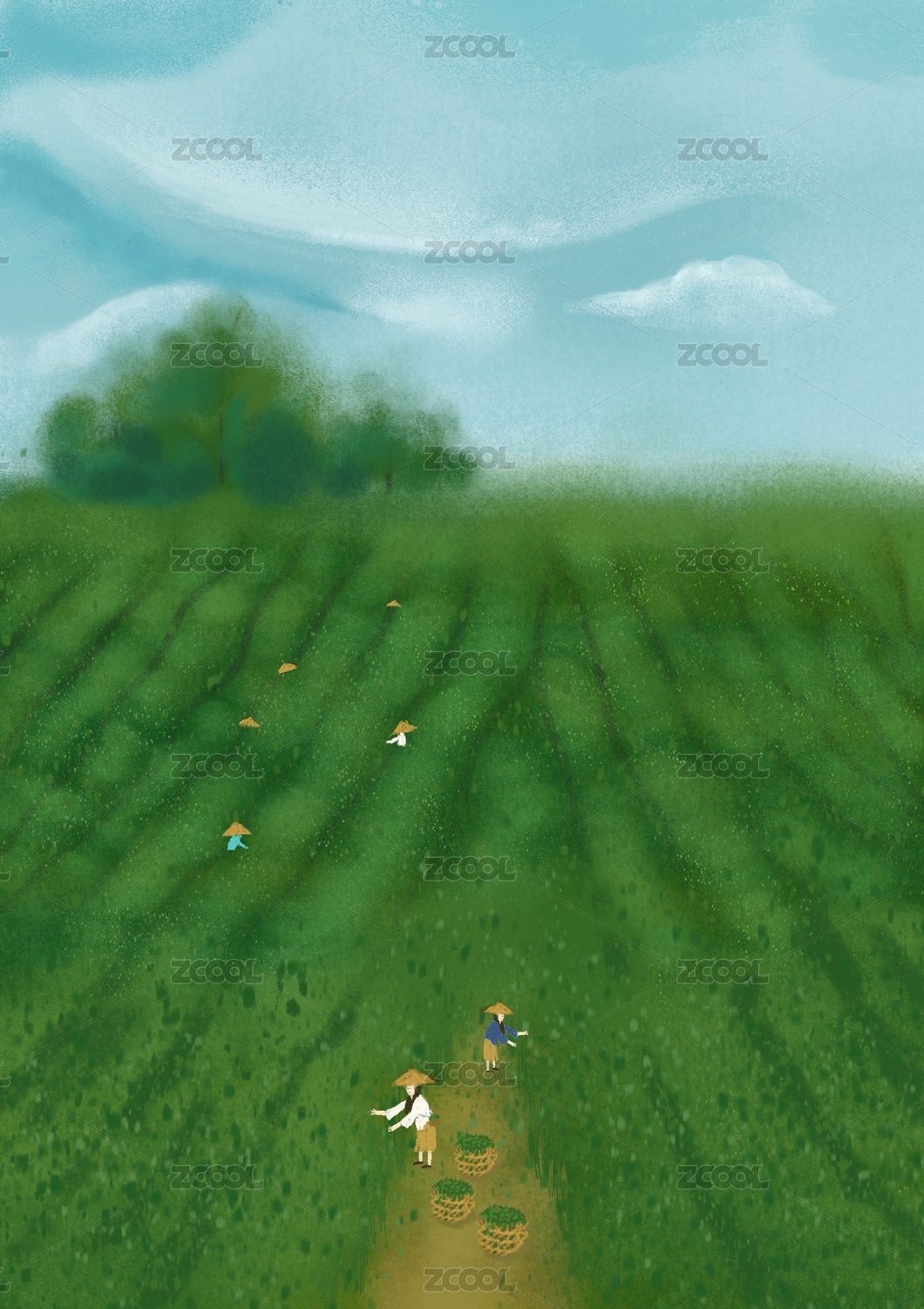 插画,春天,国潮,绿色,春游,郊游,踏青,节日,节气,清明