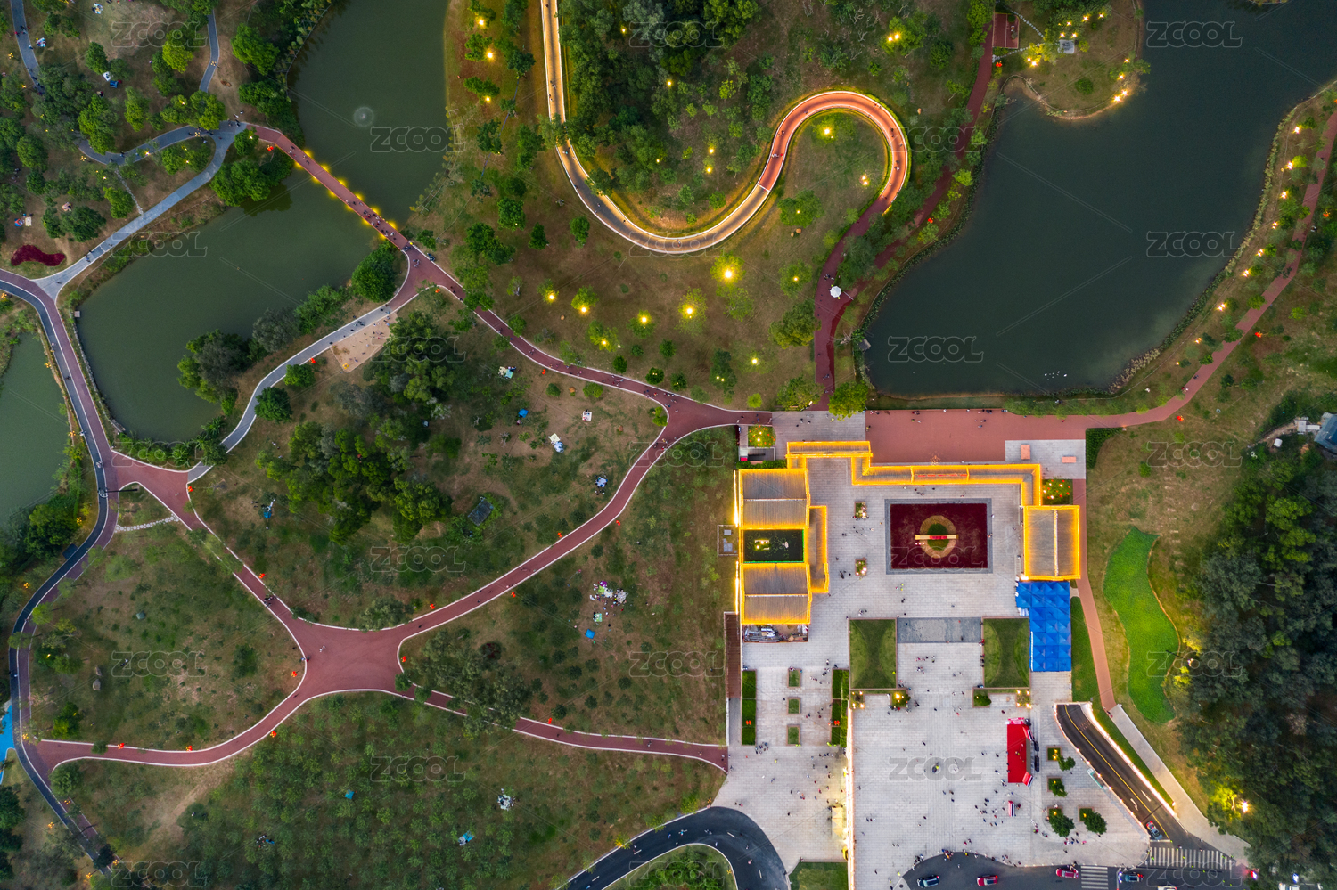 航拍郑州龙子湖郊野公园优美自然生态环境