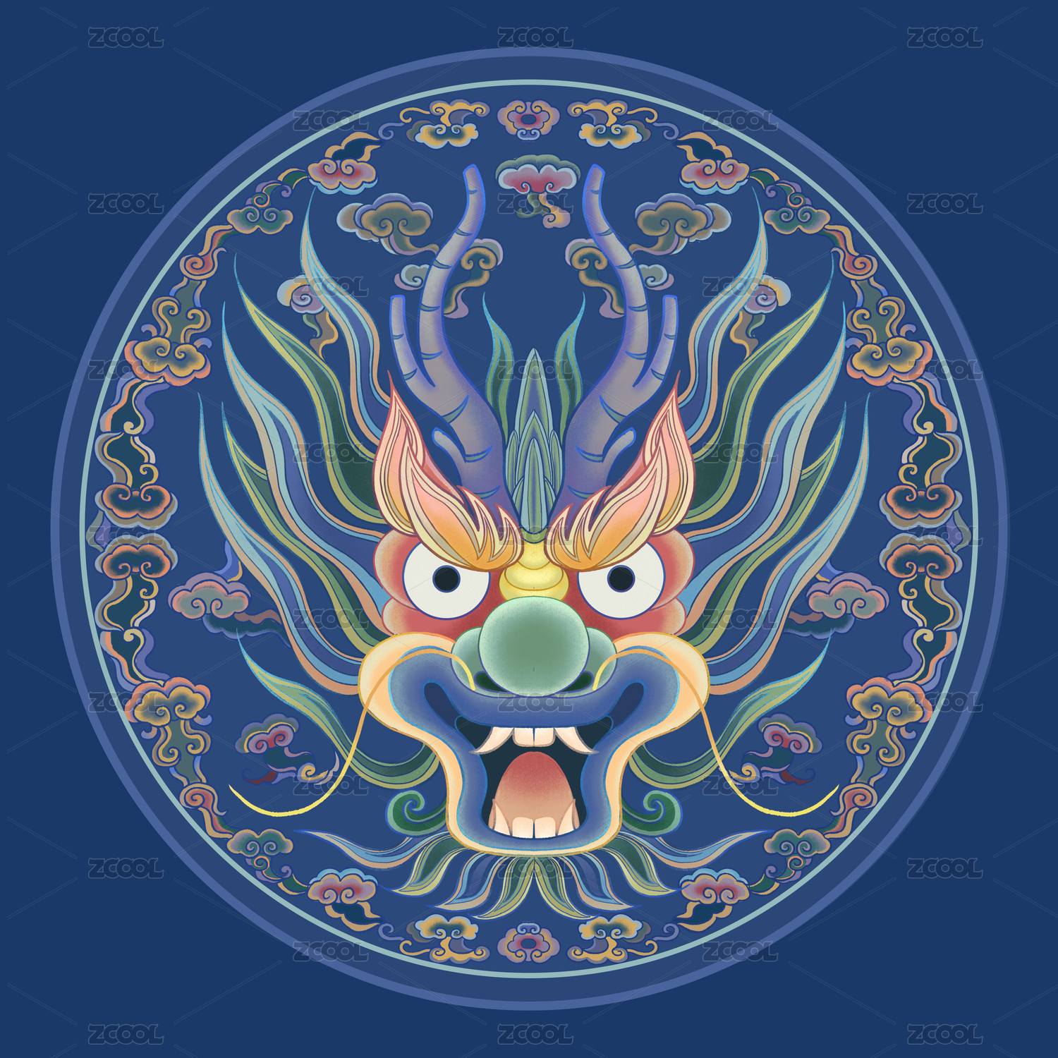 牛年生肖传统吉祥图符牛气冲天 蓝底弯角