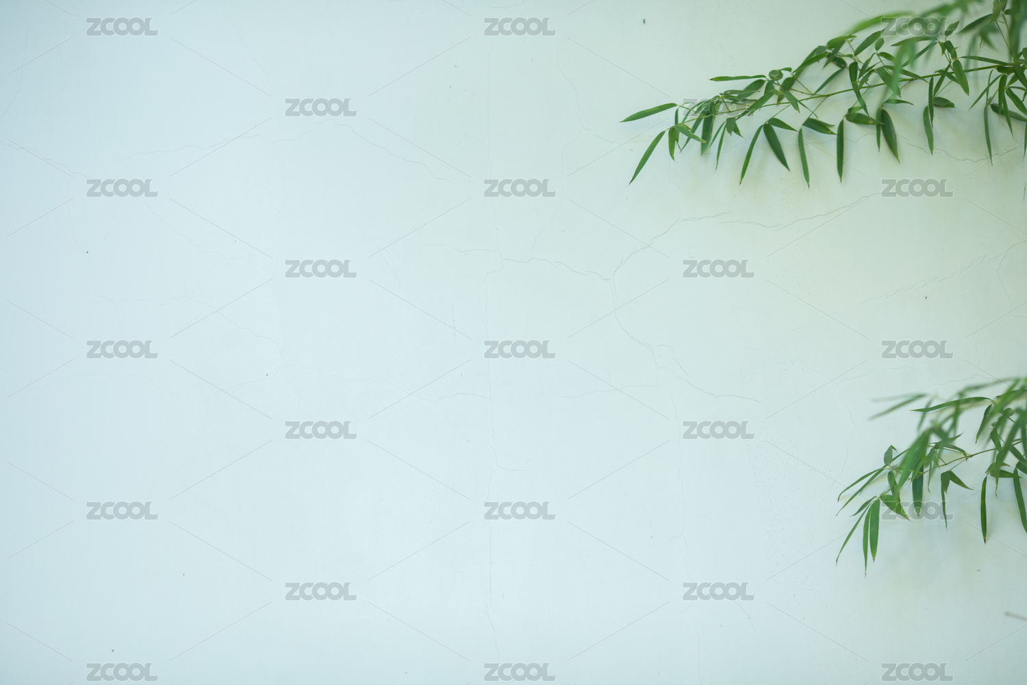 白墙前的绿色竹枝竹叶背景,中国风传统文化