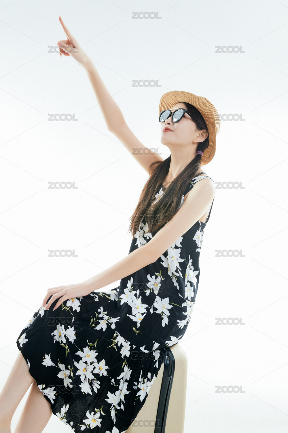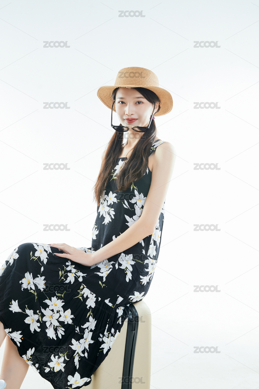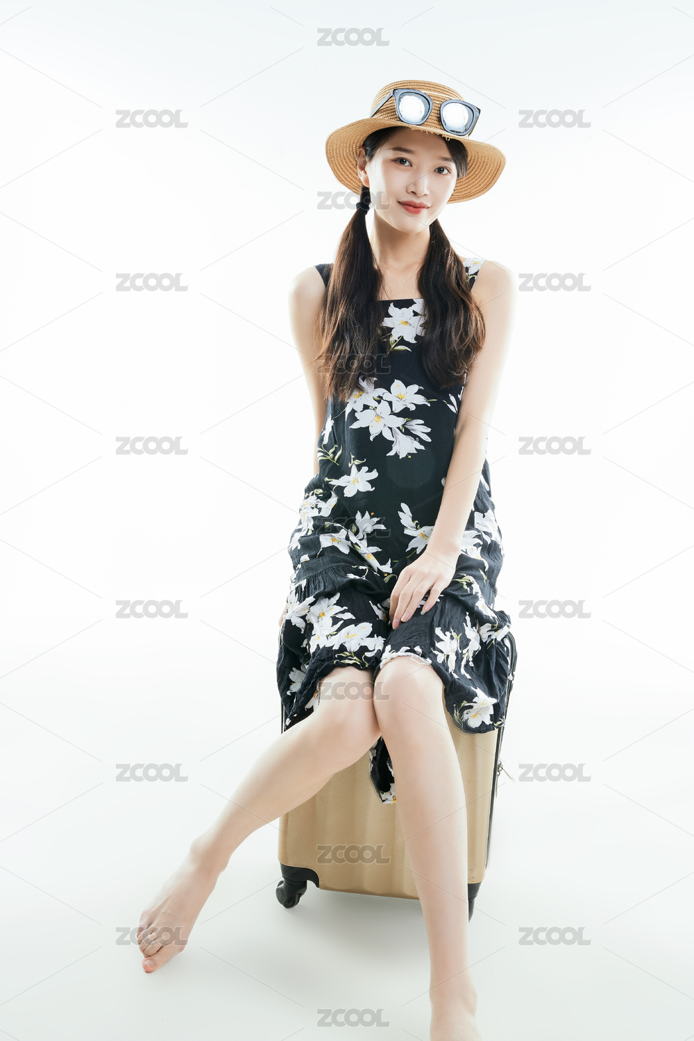 白色背景下准备出发旅行的美丽东方少女