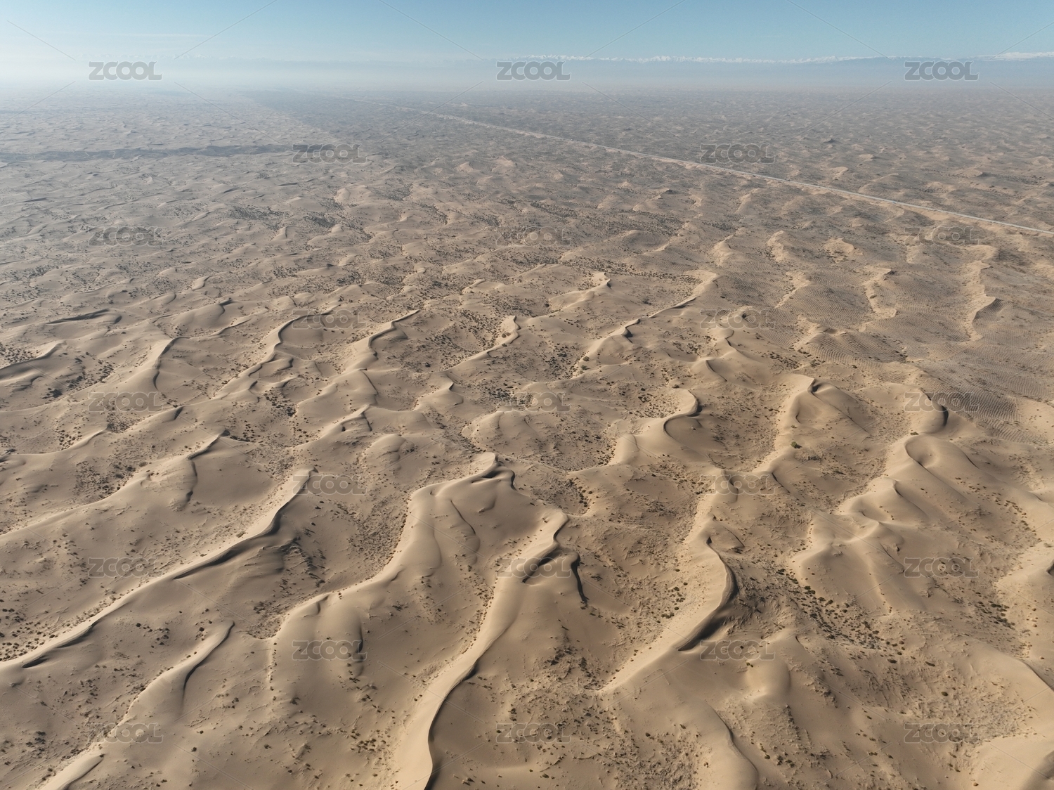中国新疆塔里木盆地塔克拉玛干沙漠航拍图