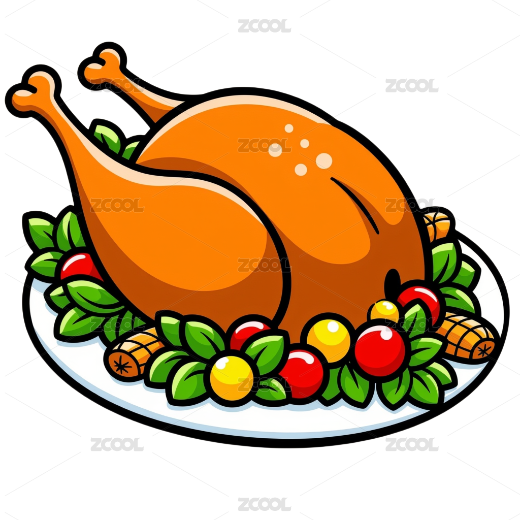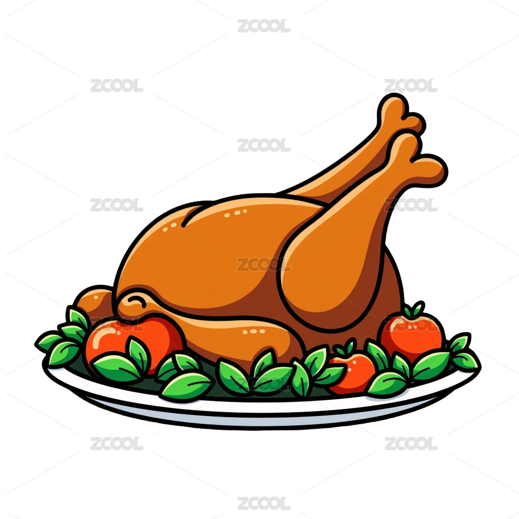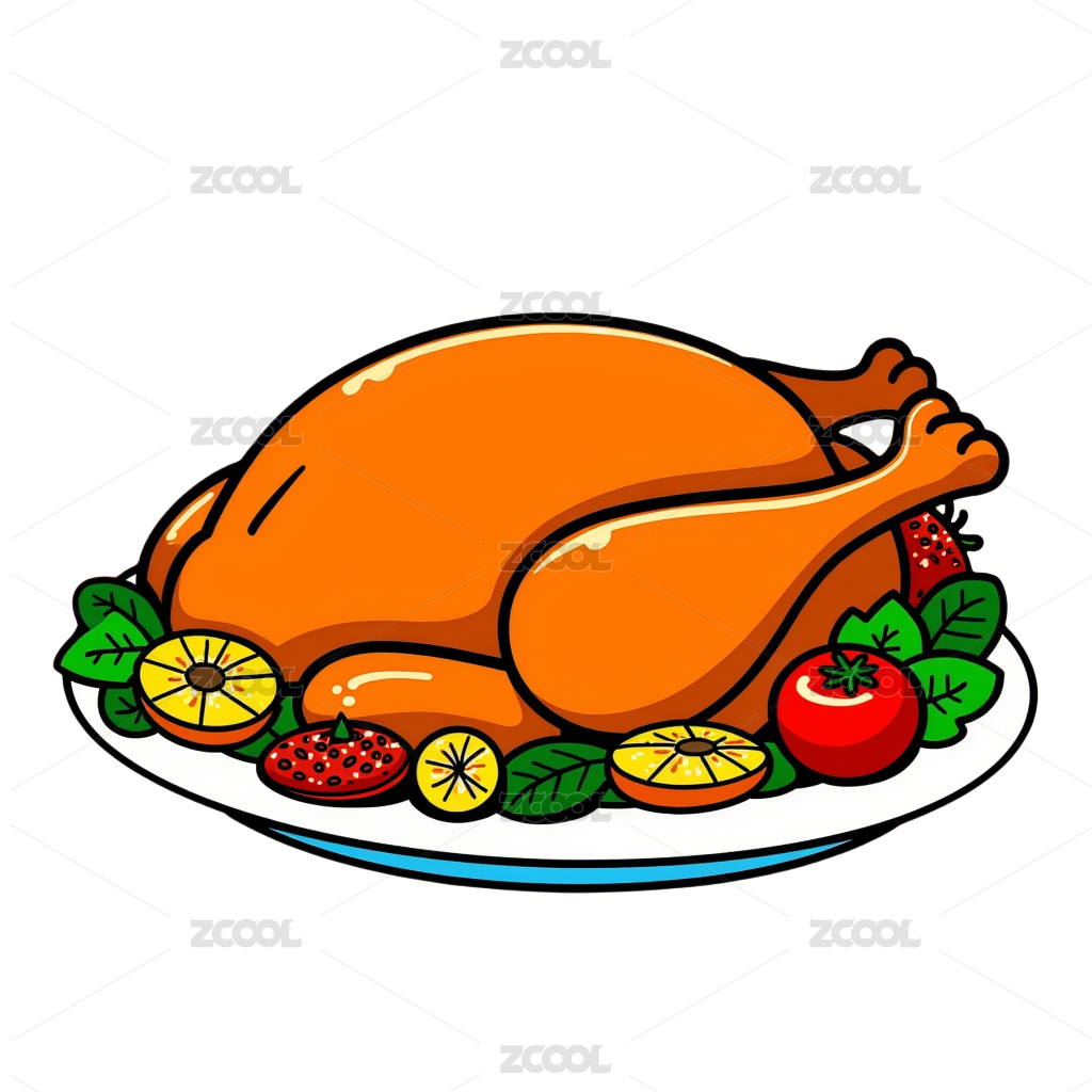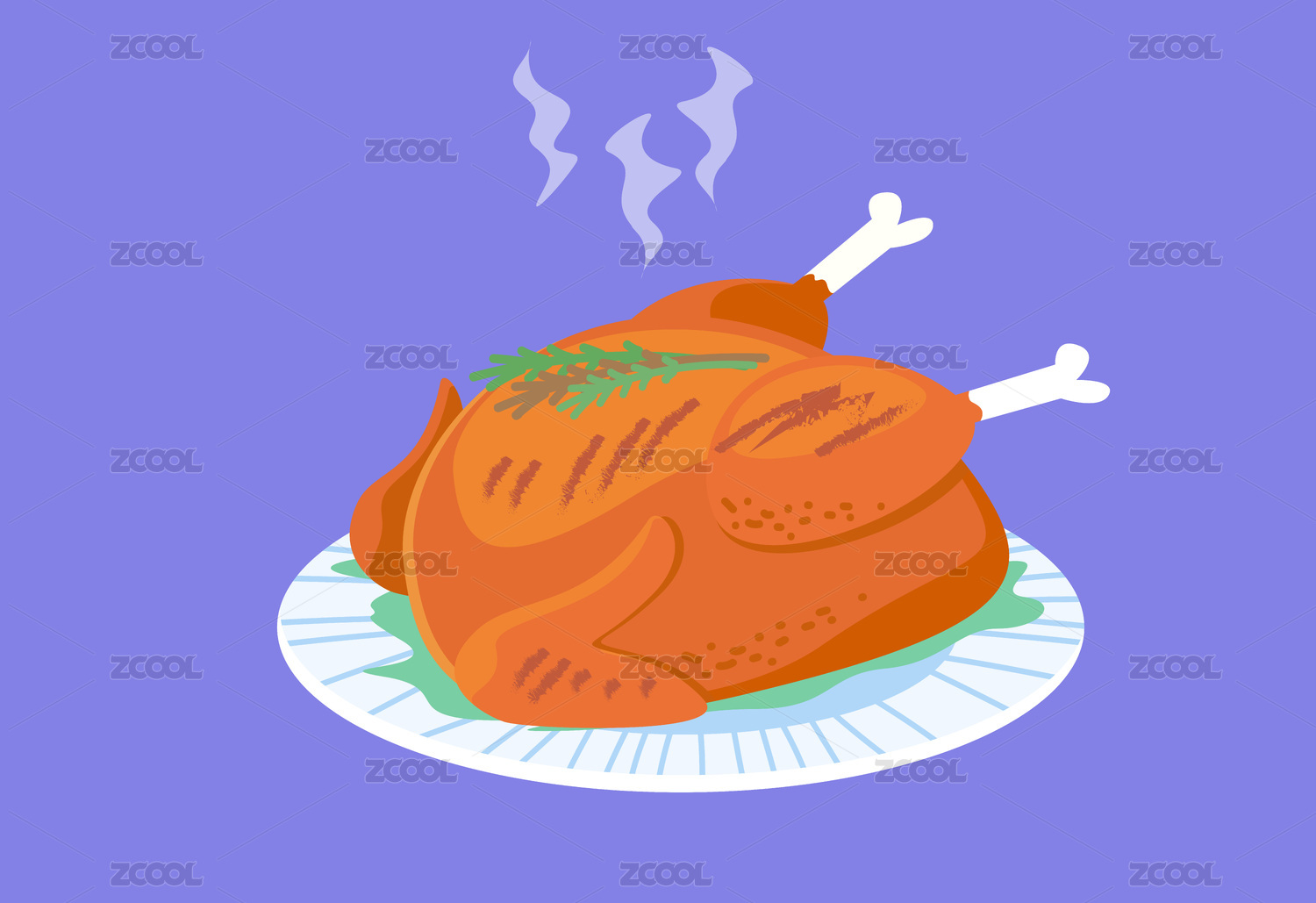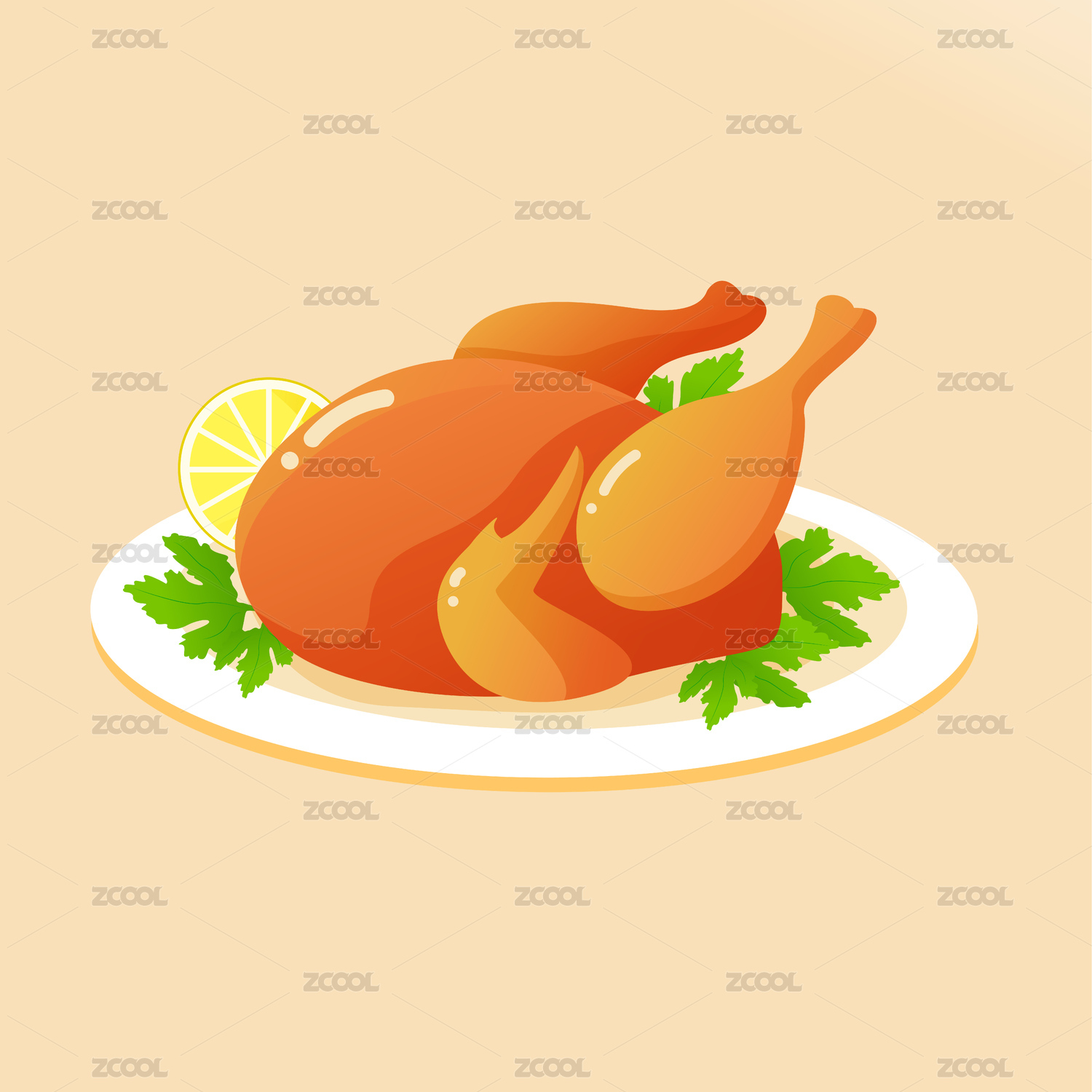 插画,烤鸡,烧鸡,生菜,盘子,食物,美味,矢量,元素,卡通