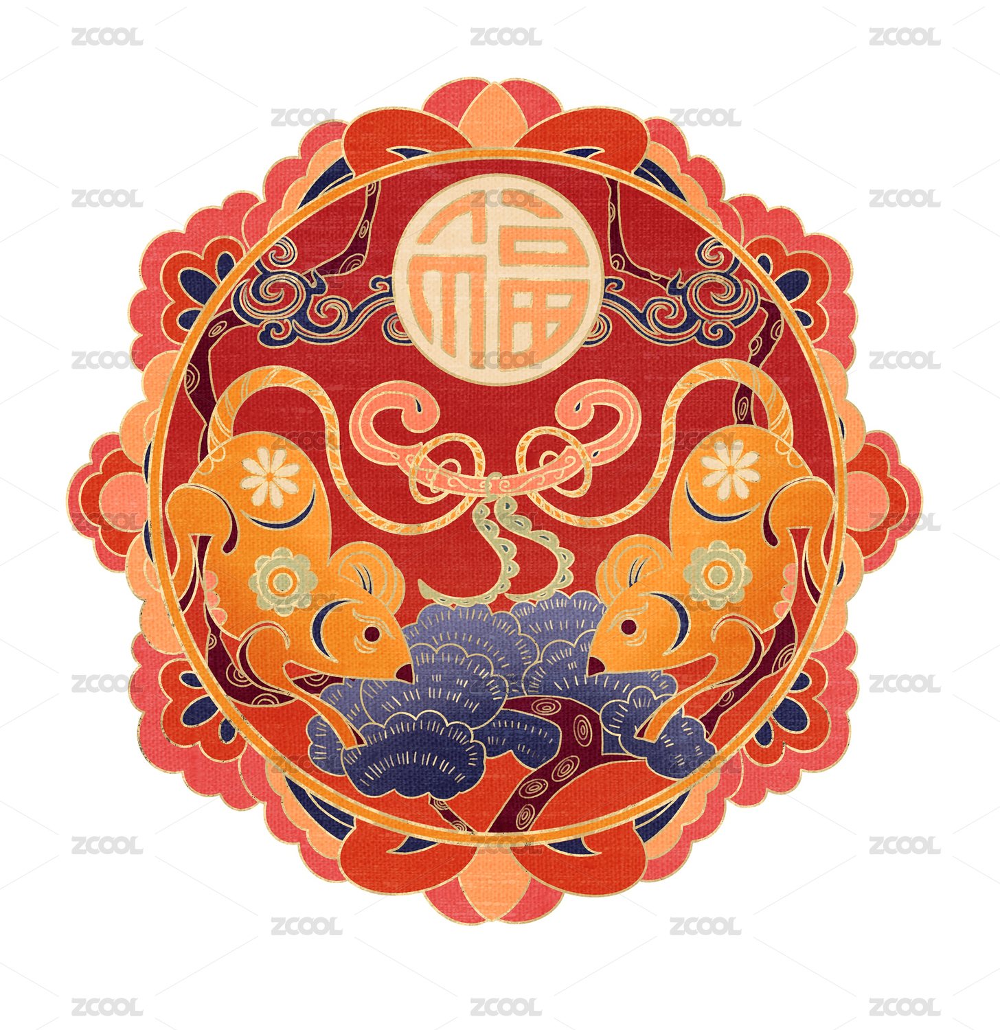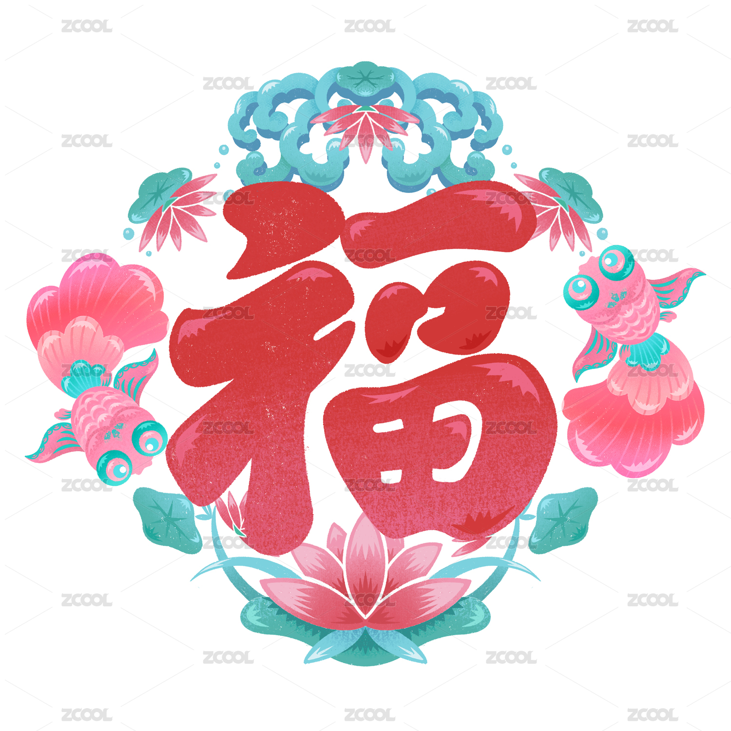 国潮元旦和锦鲤等组合元旦立体字艺术字字