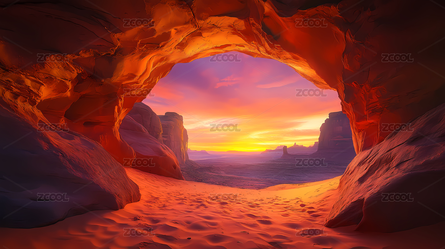 峡谷洞穴中的绚丽日落