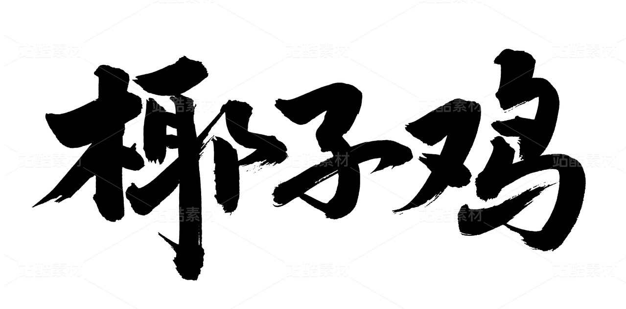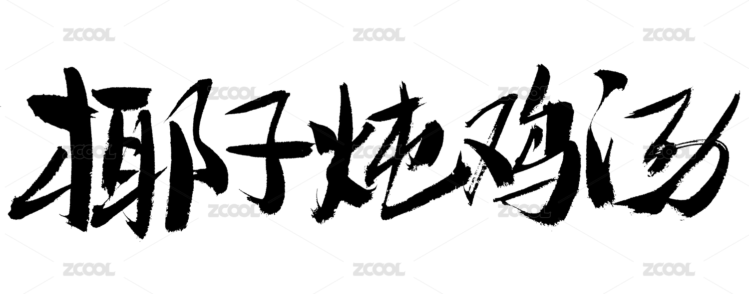 椰子炖鸡汤中国风手写书法字体