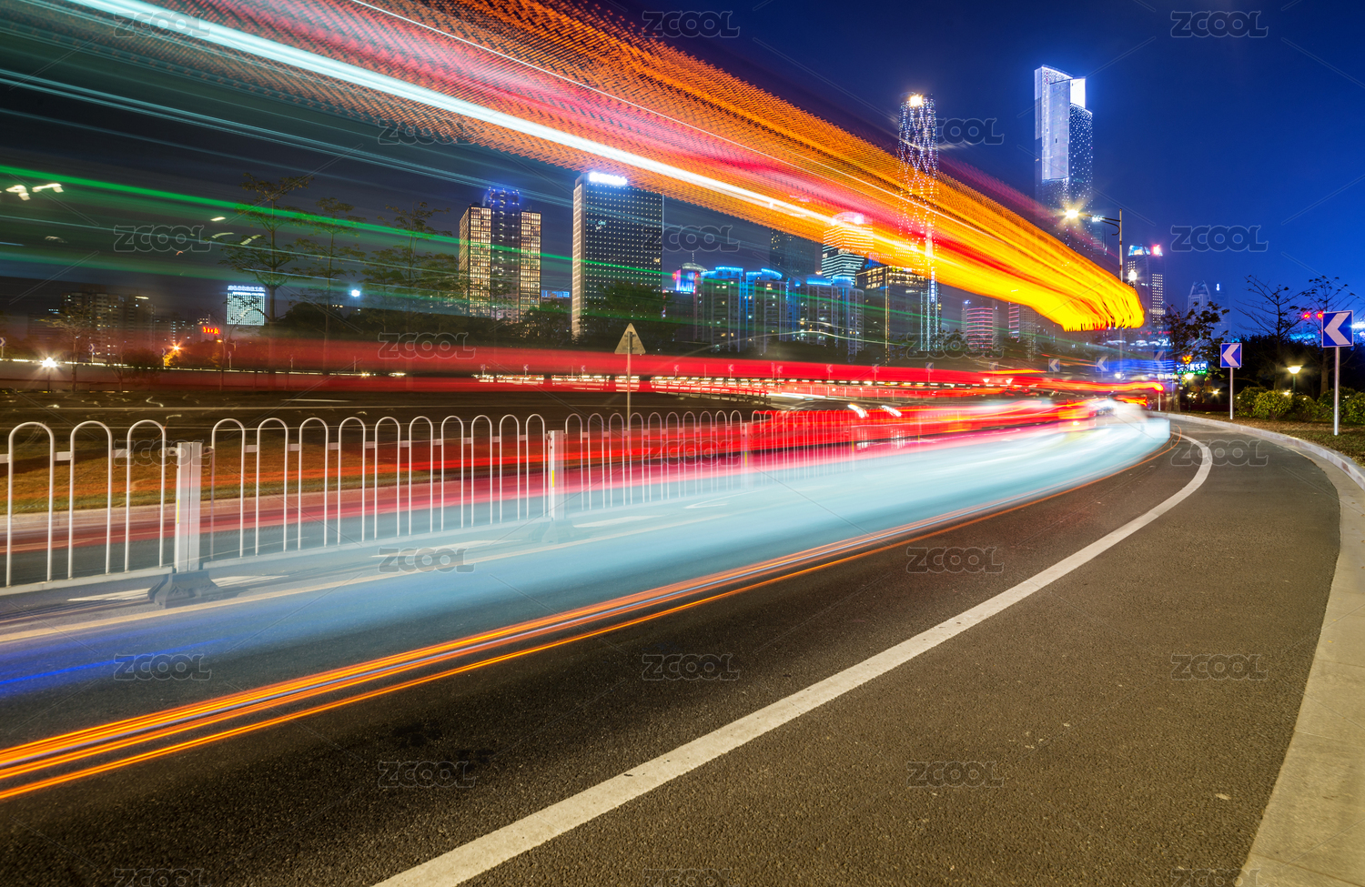 夜晚城市公路光影轨迹