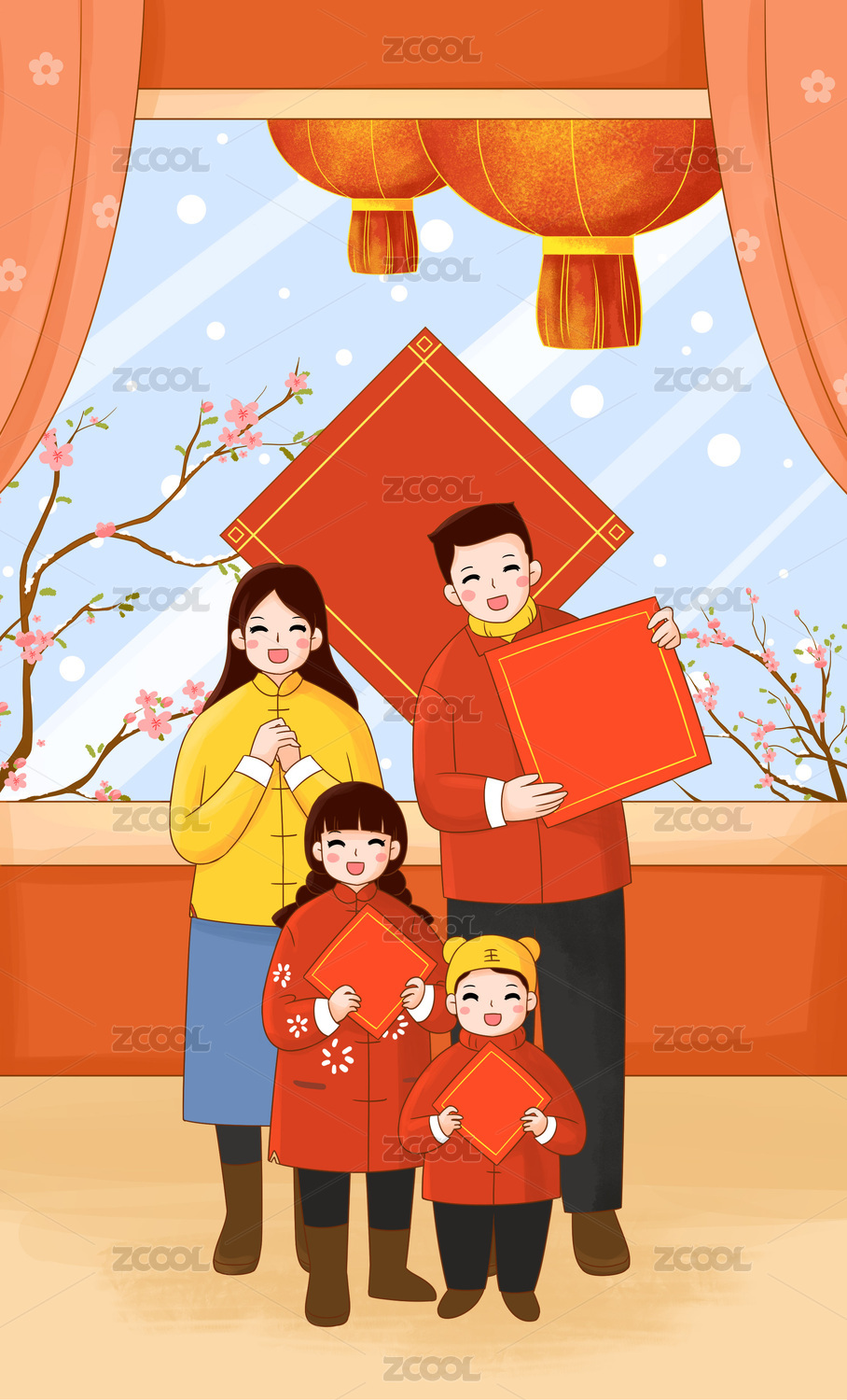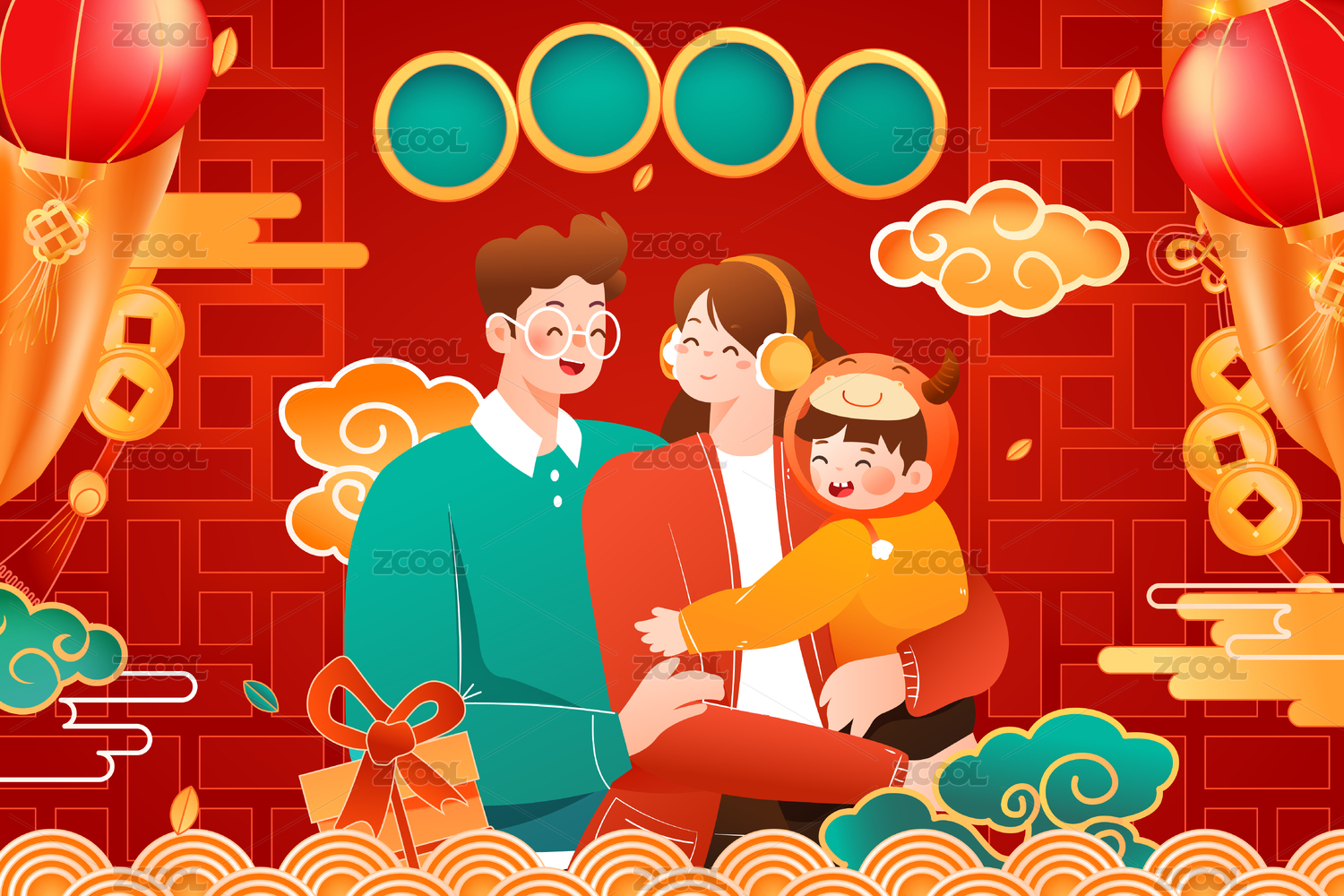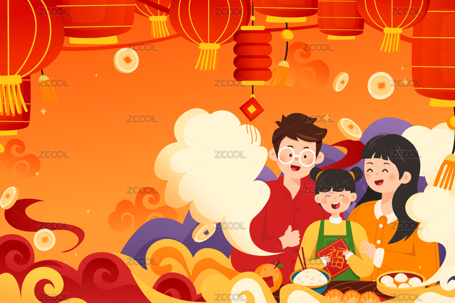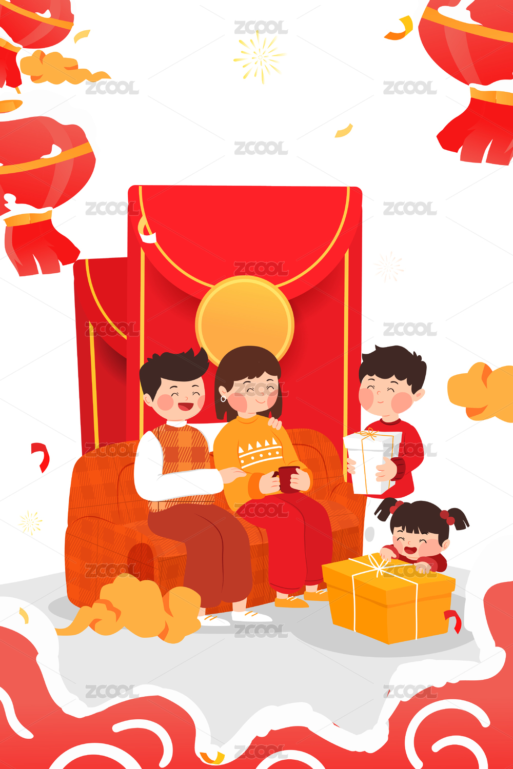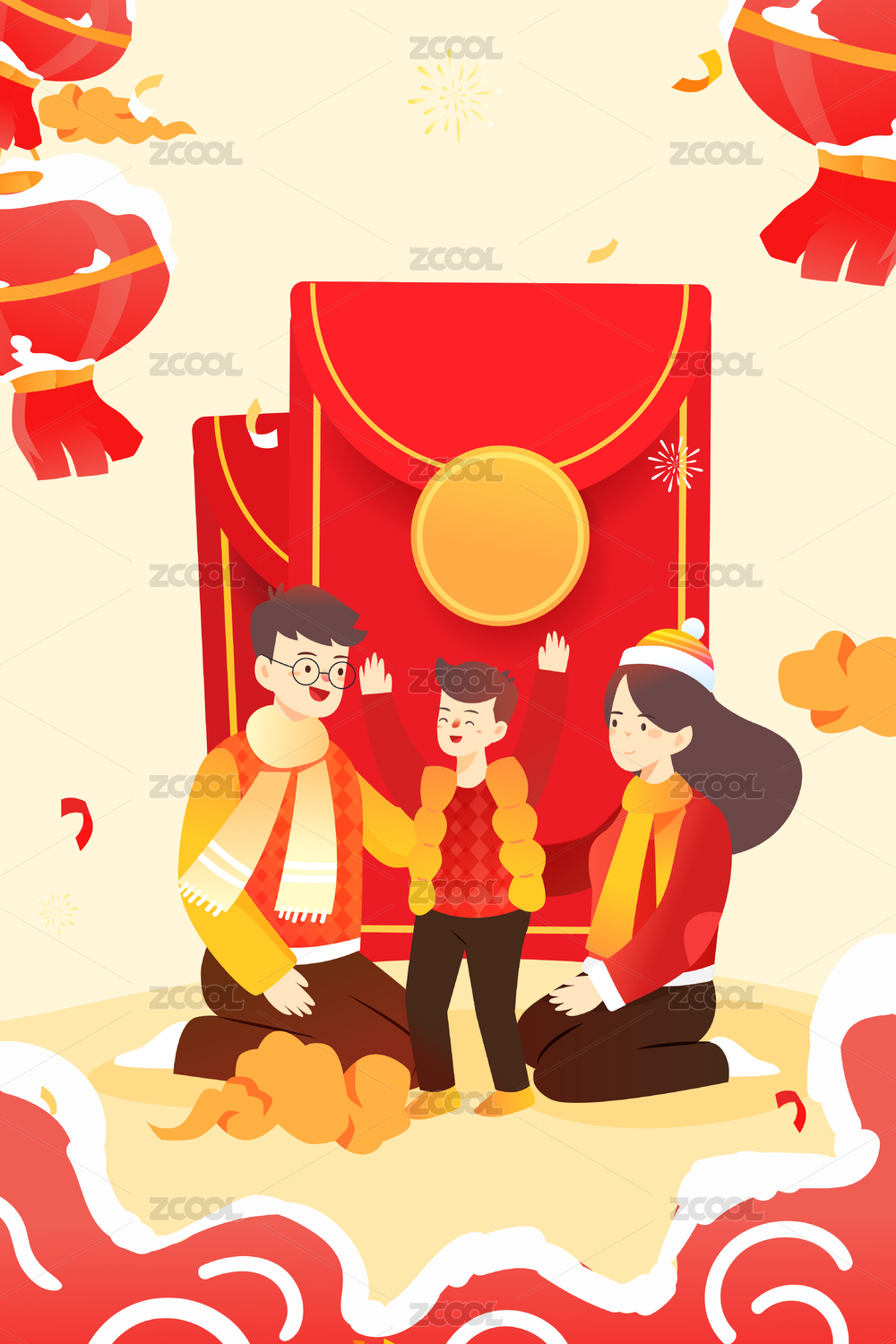 卡通2020鼠年新年家人红包活动背景矢量插画