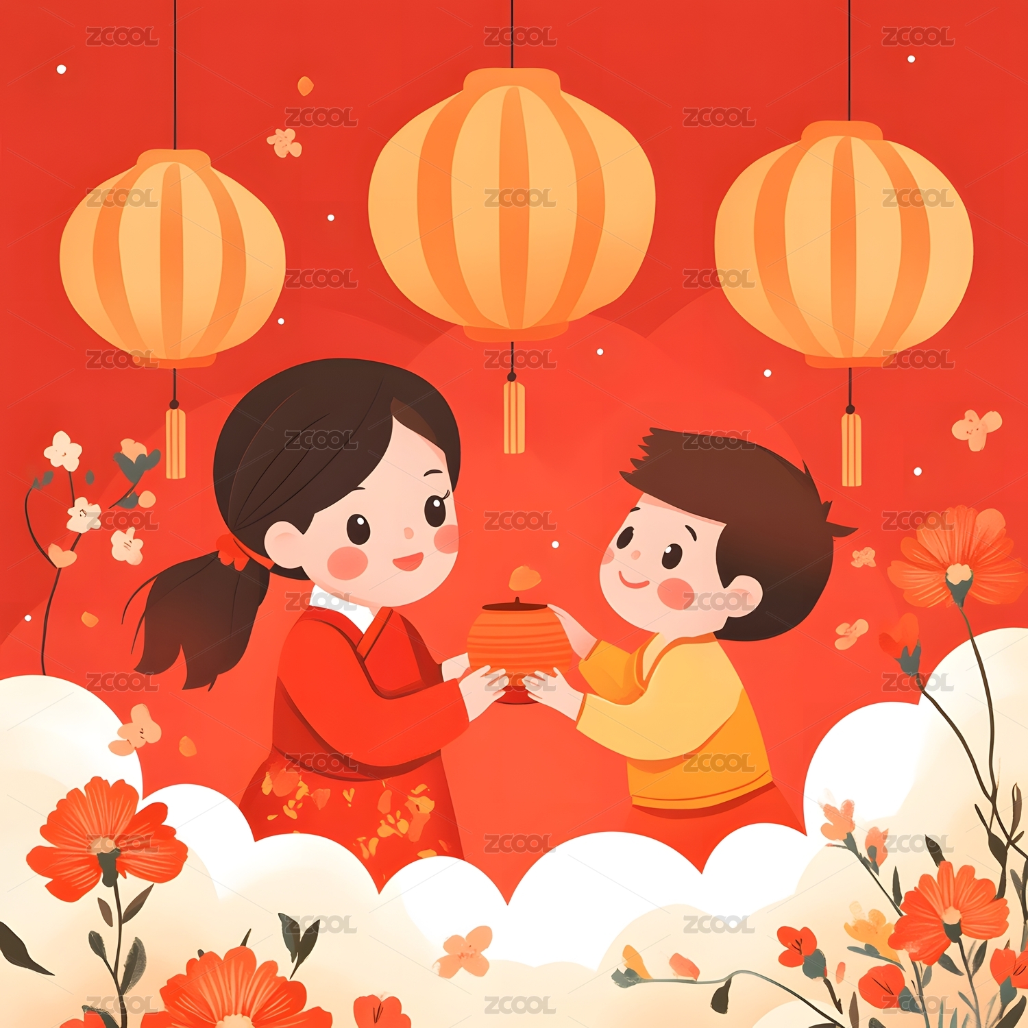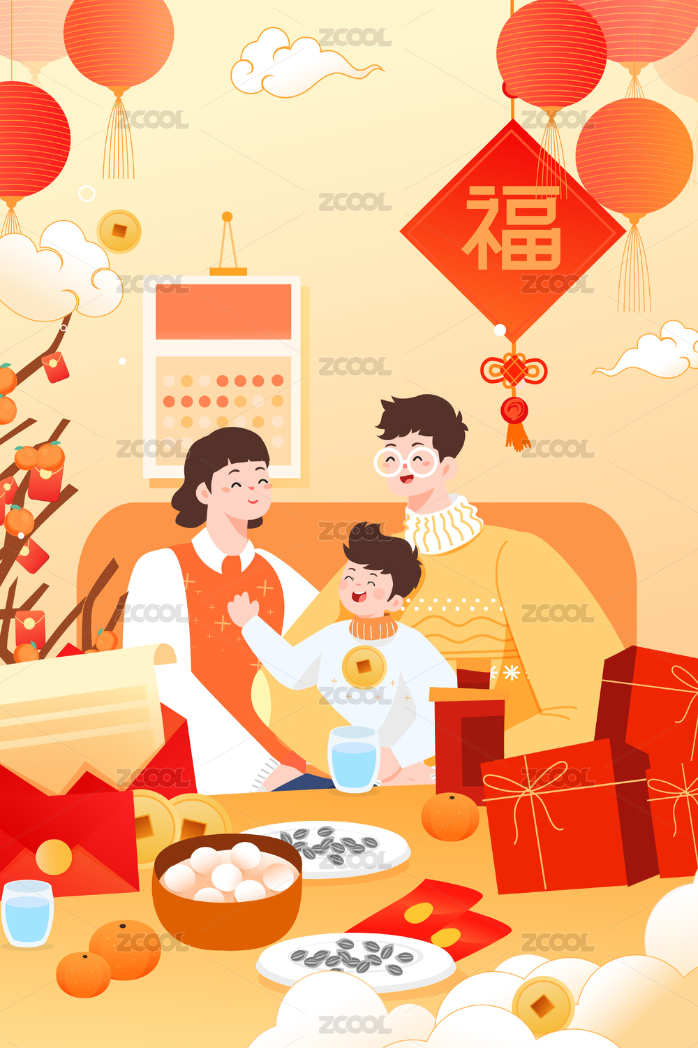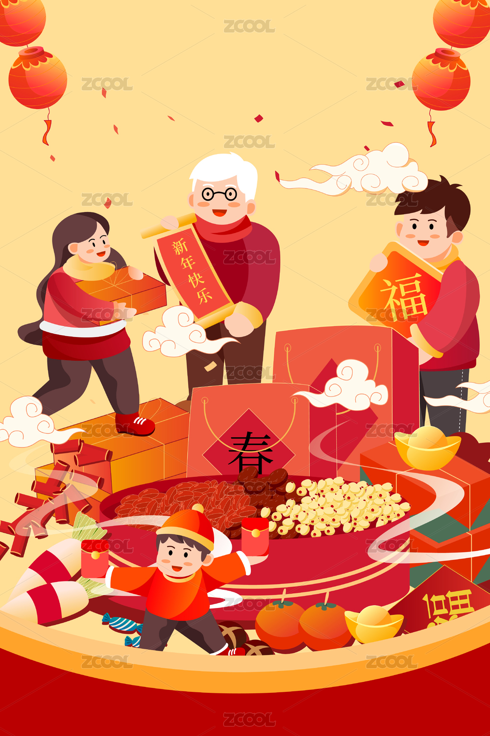 新年,春节,购物,桃花,梅花,灯笼,祥云,元宝,金币,礼物