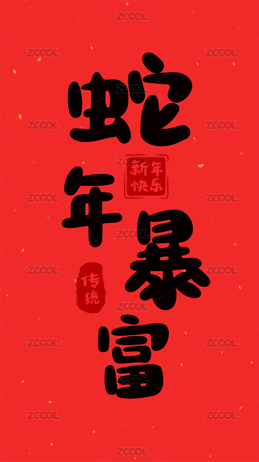 2025蛇年春节新年蛇年暴富祝福语文字贴
