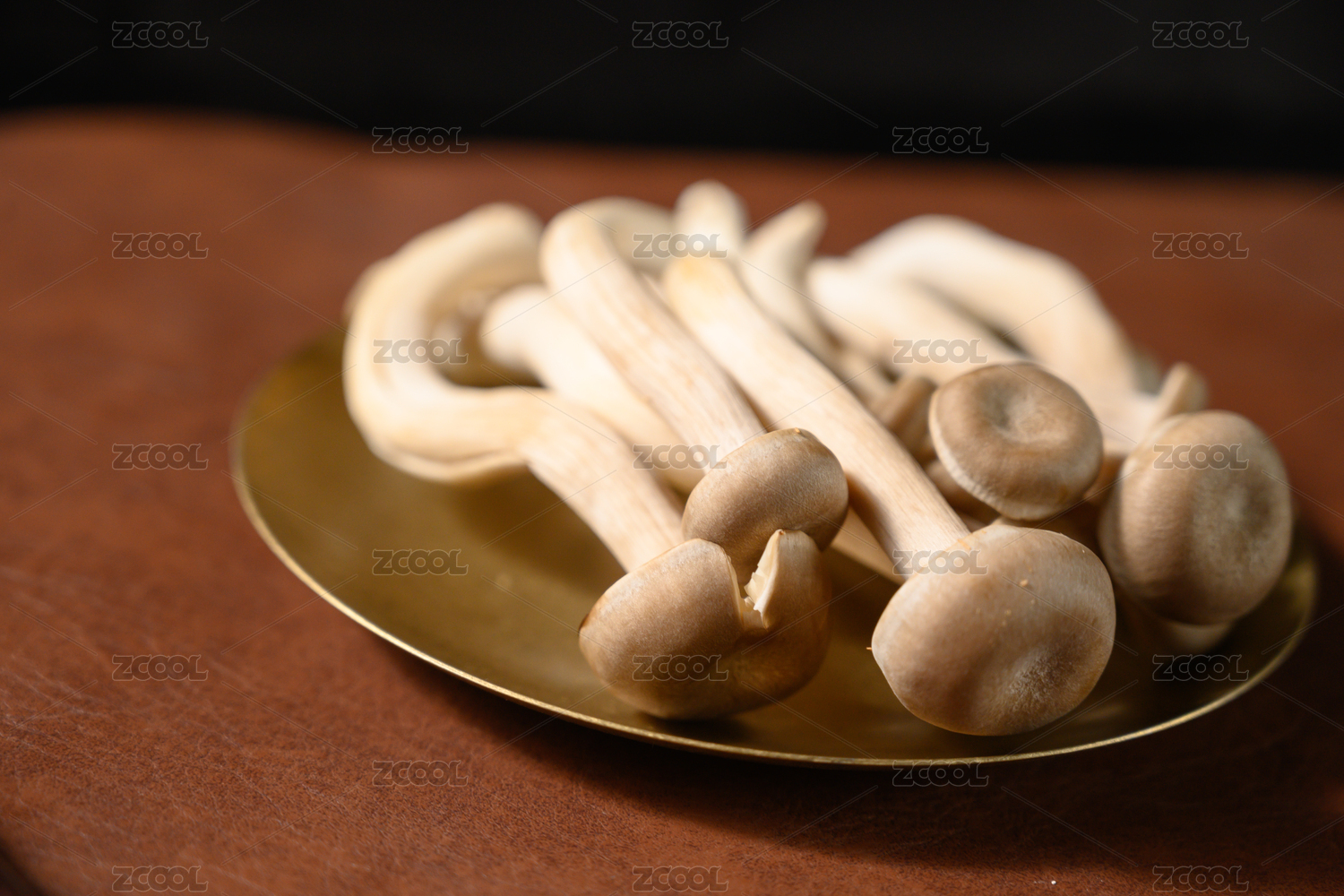 香菇,切片,铜盘子,暗色调,鲜香菇