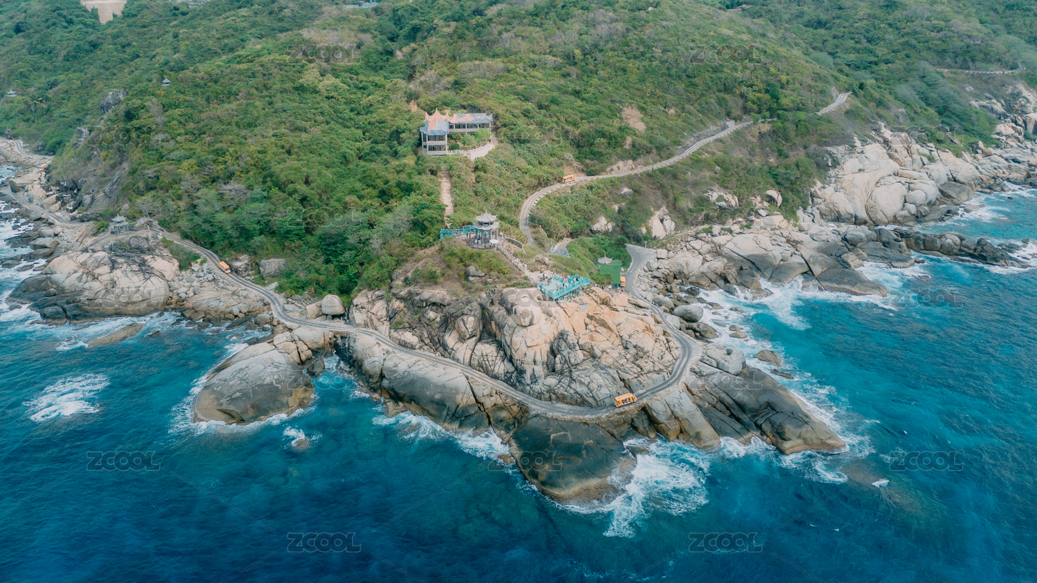 航拍海南陵水分界洲岛热带海岛崖壁民宿房间