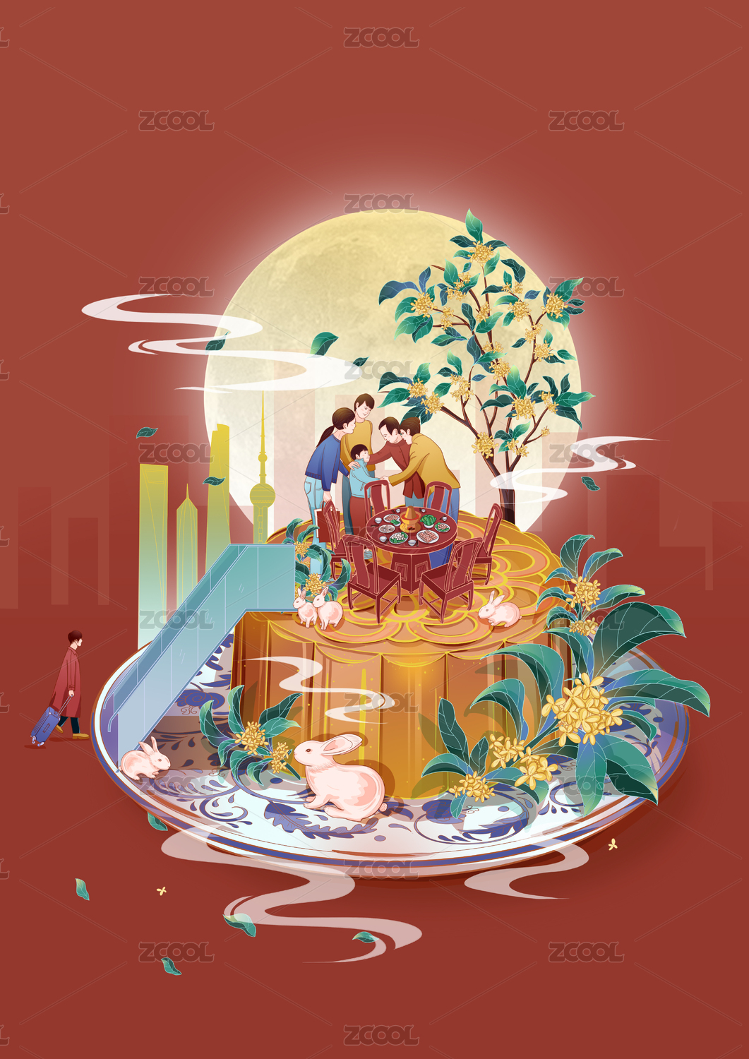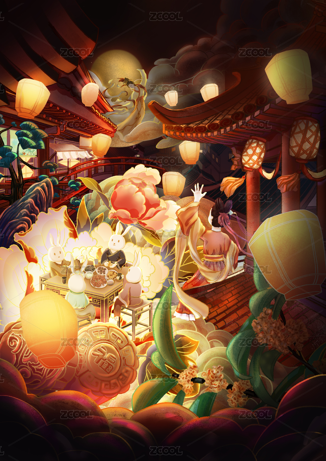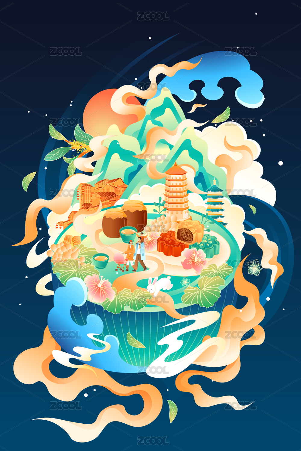 国风氛围感中秋节插画