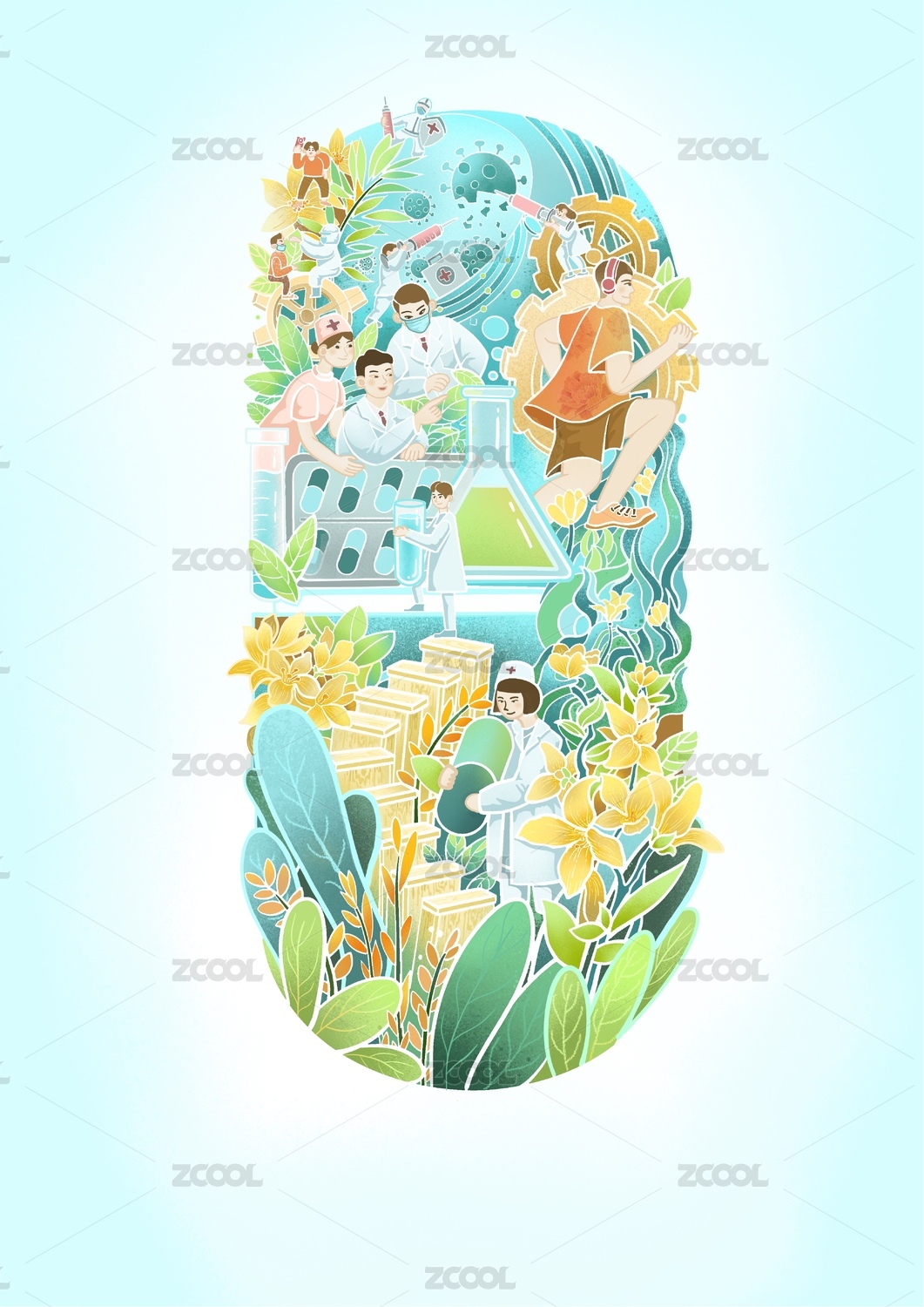 创意节气风景绘画插图