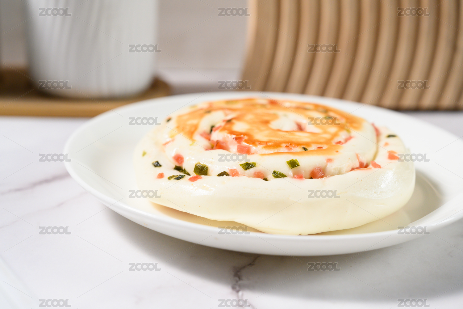 桌面上的盘子里的美味可口的香葱花卷