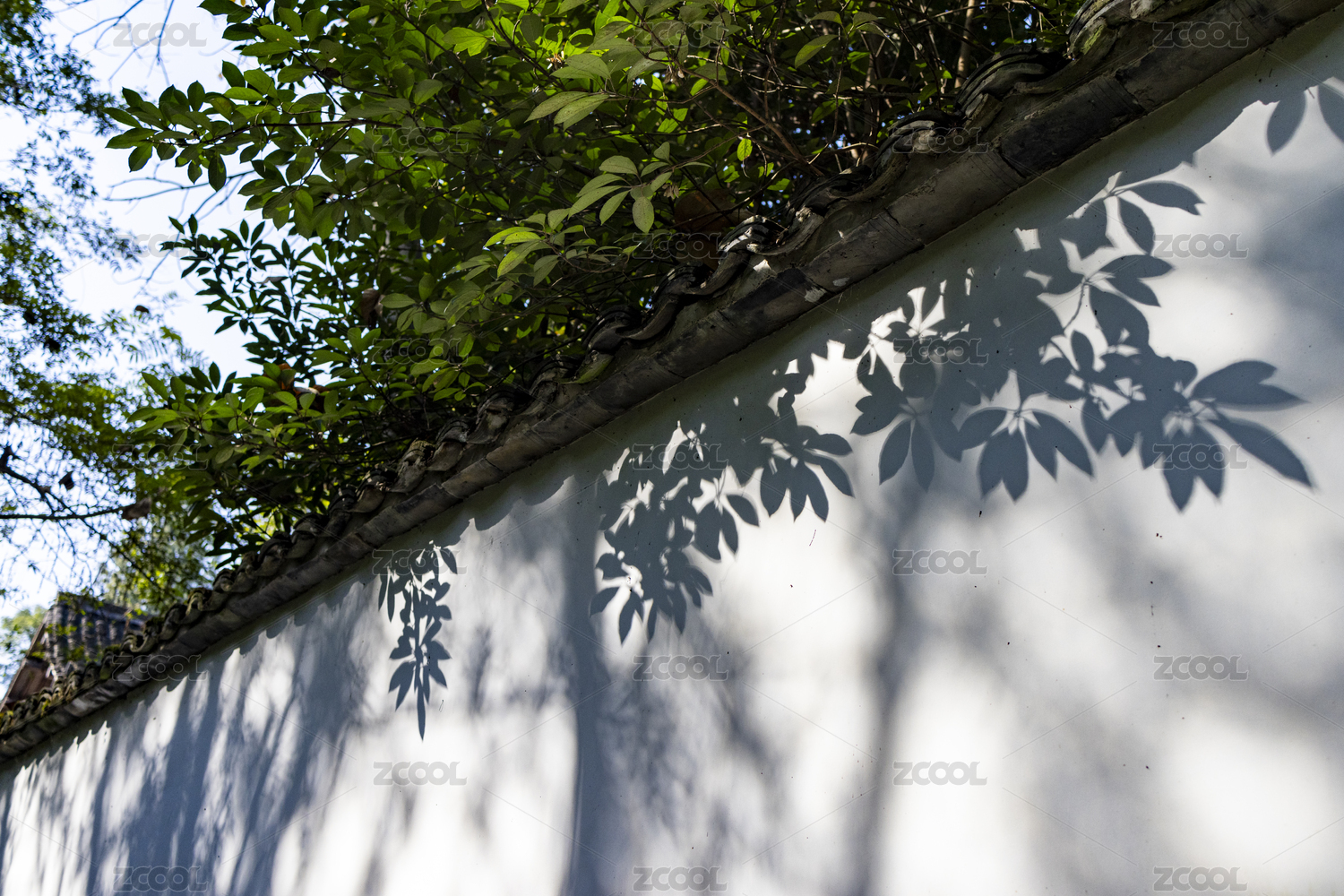 杭州法云安缦古典建筑白墙 树影 唯美光影