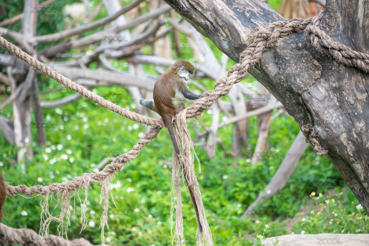 广州动物园里玩耍的长尾猕猴