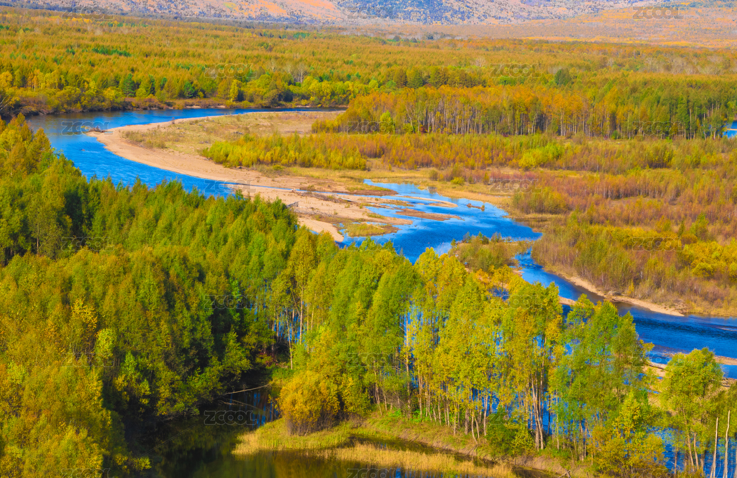 中国大兴安岭色彩斑斓的森林湿地秋景