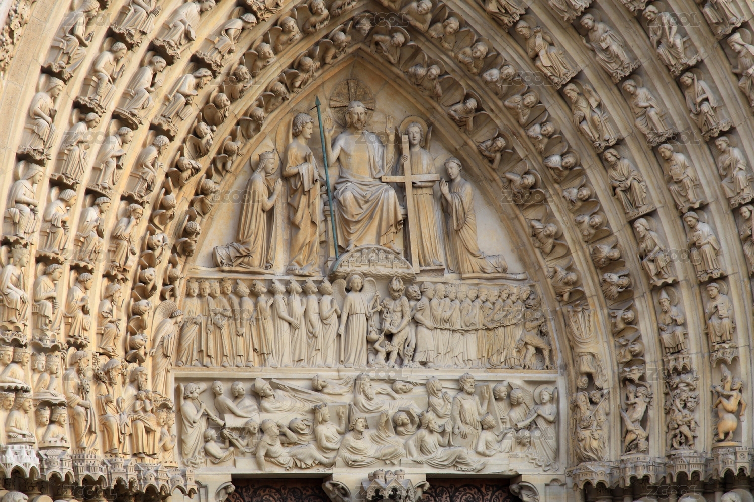 法国巴黎--巴黎圣母院 国王廊 门口浮雕