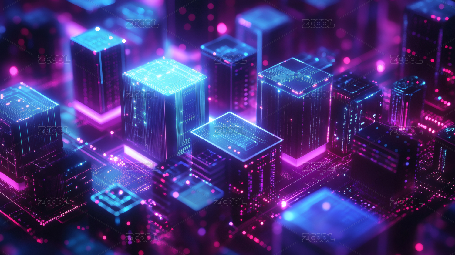 未来科技电路板上的立方体