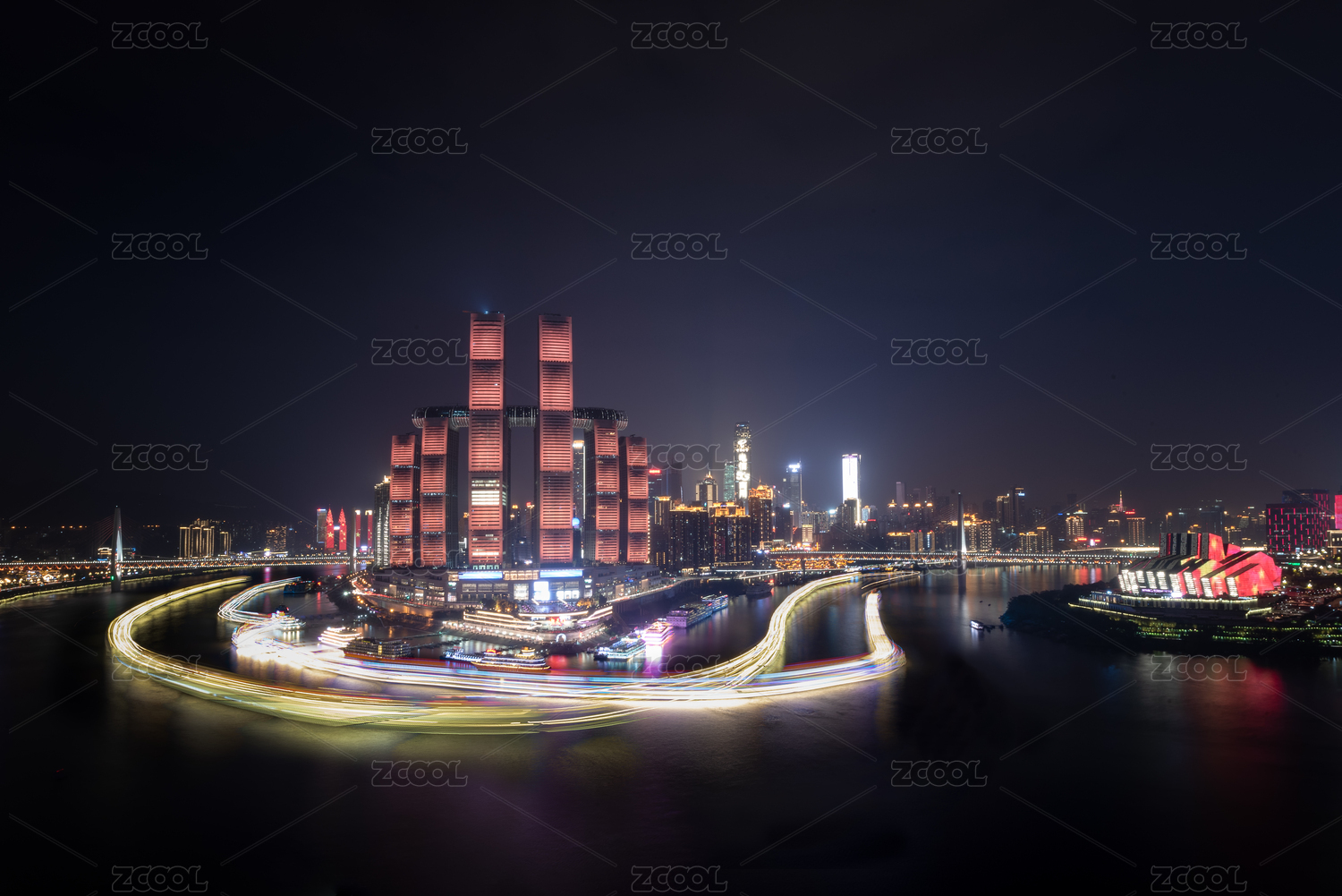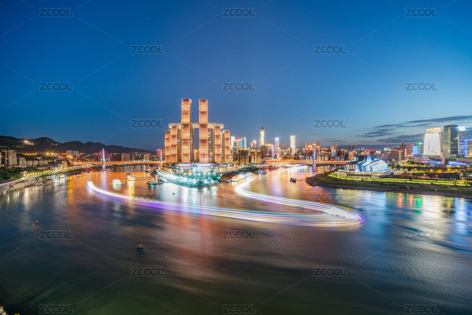 中国重庆朝天门沿岸高楼城市天际线夜景