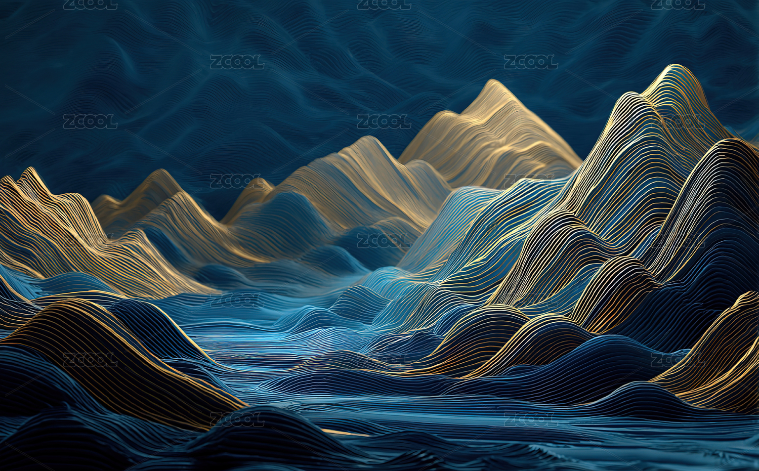 线条,中国风,中式,优雅,中国传统,沙漠,沙丘,金色,骆驼,艺术