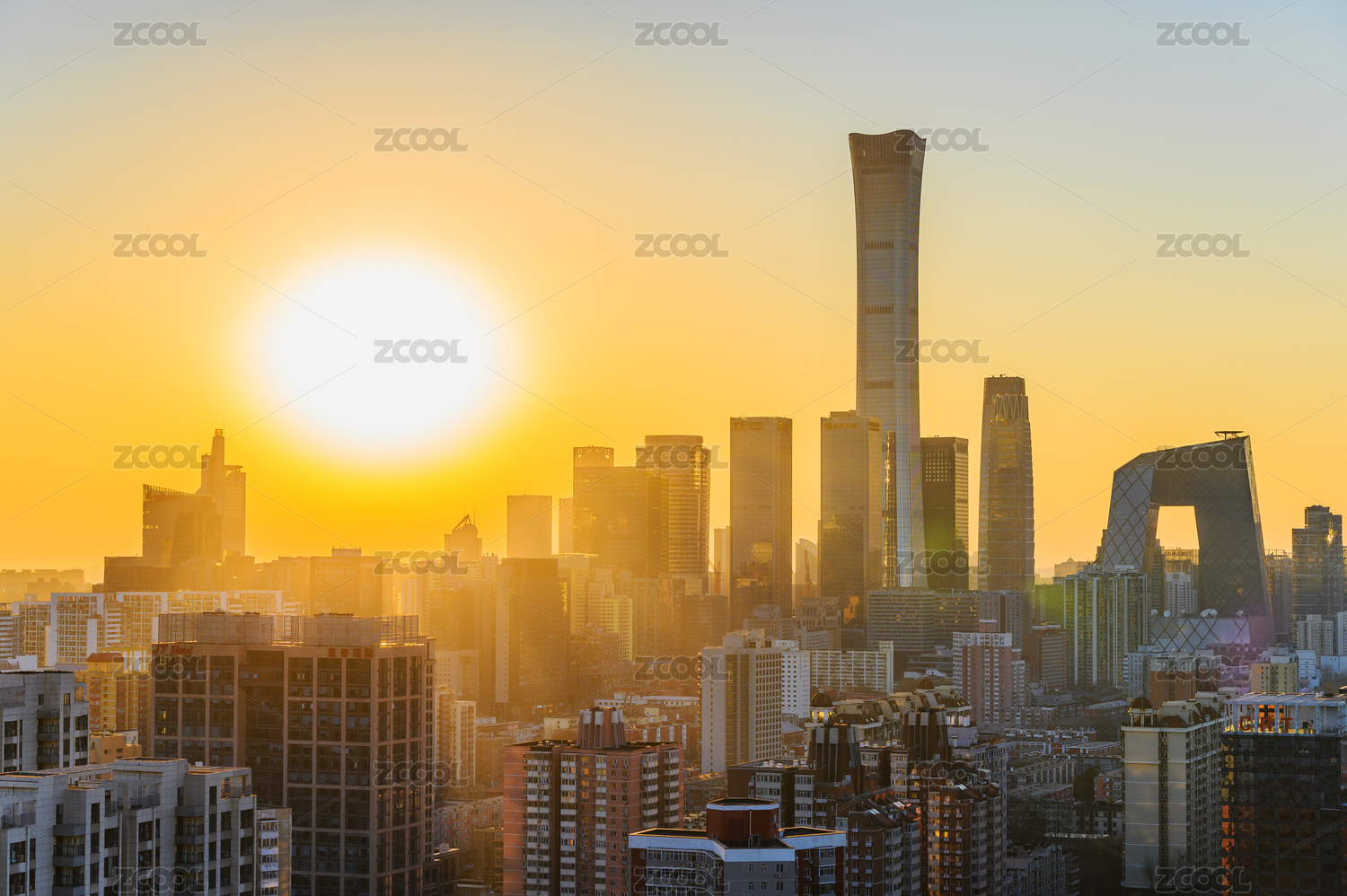 北京朝阳区城市日落