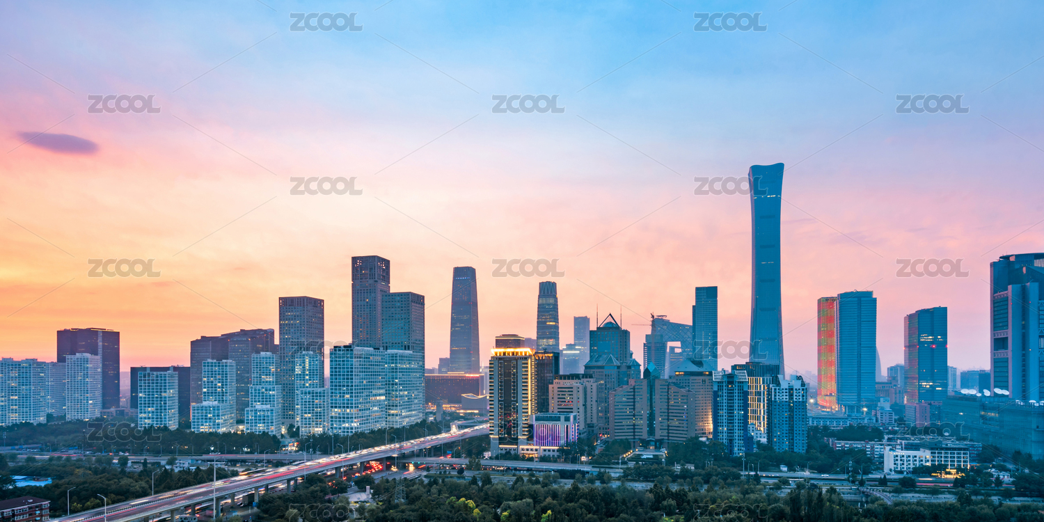 北京国贸CBD城市天际线日落夕阳