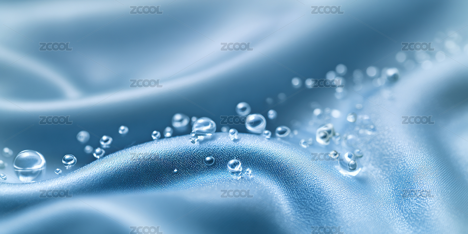 带水珠的蓝色褶皱布料