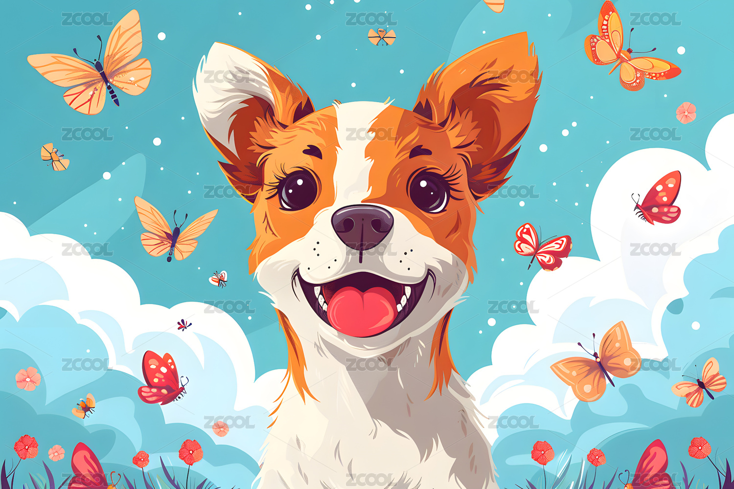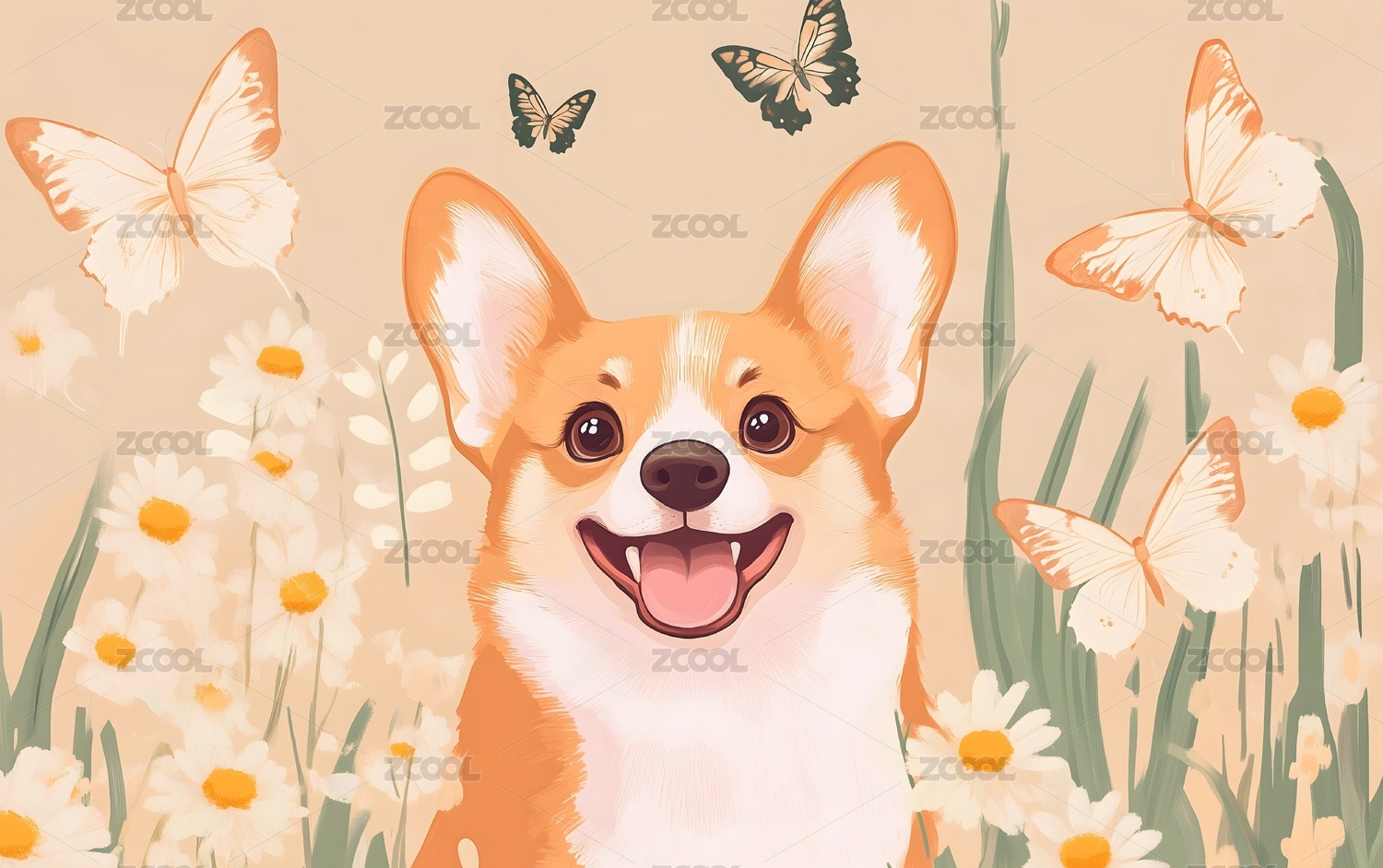 可爱,小狗,柯基,图片,背景,蝴蝶