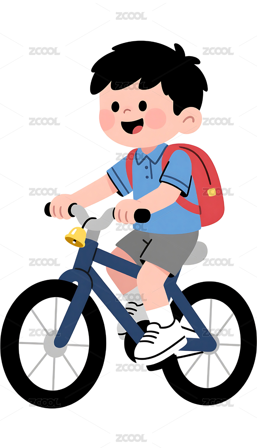 白色背景下骑自行车出行的小男孩图案